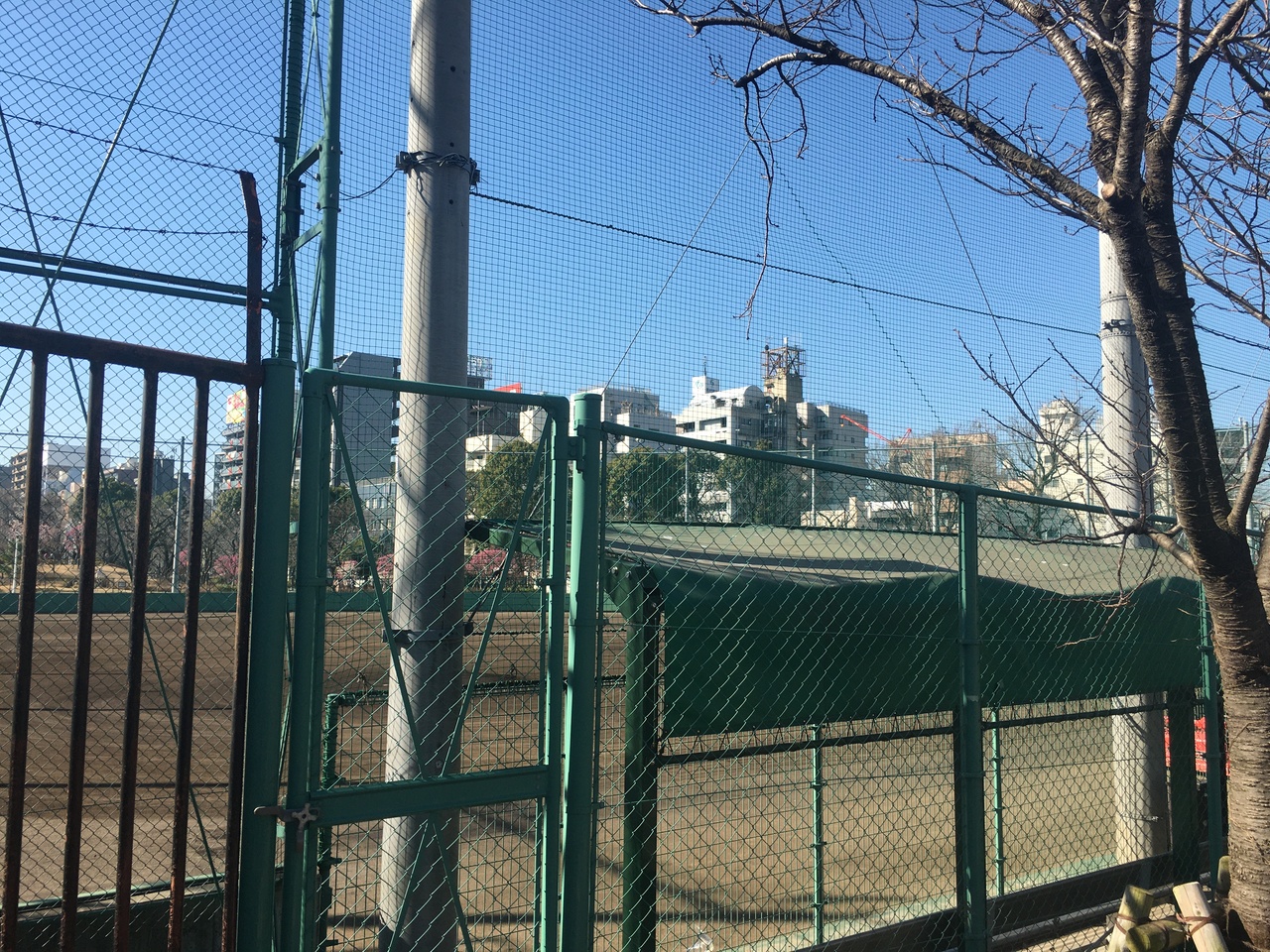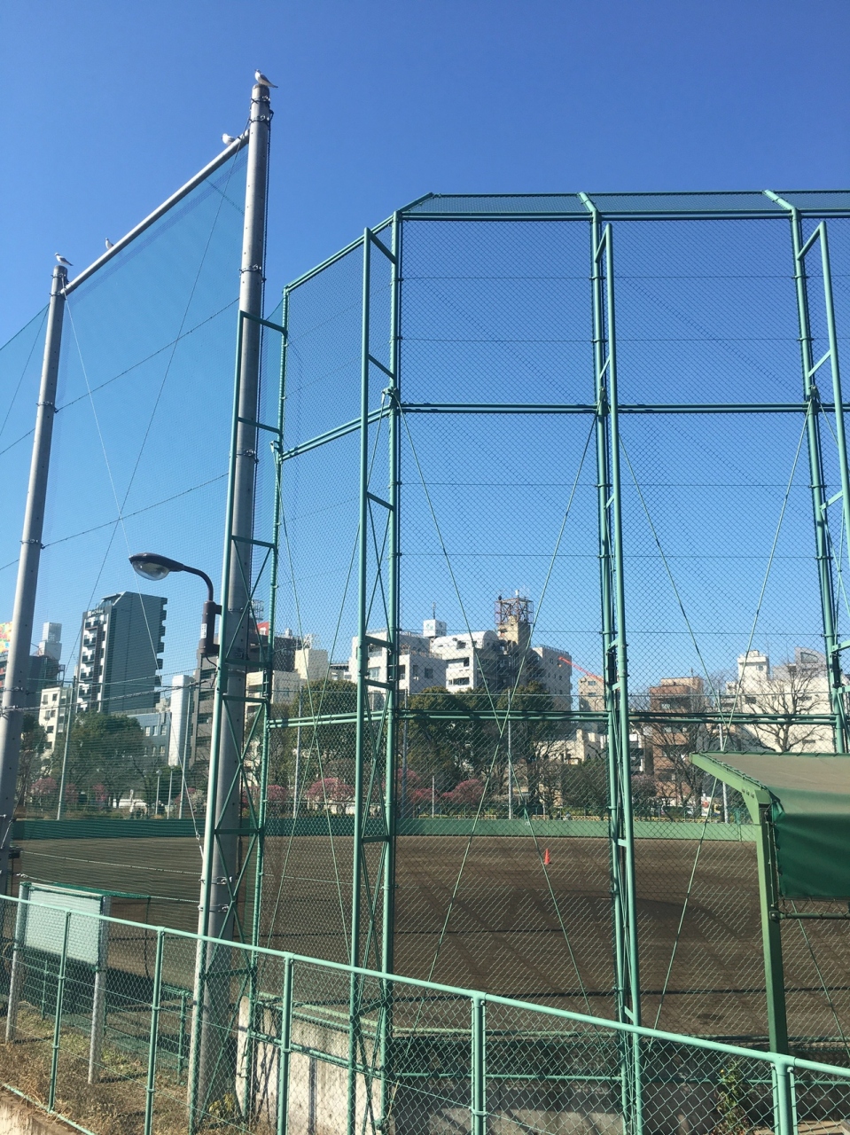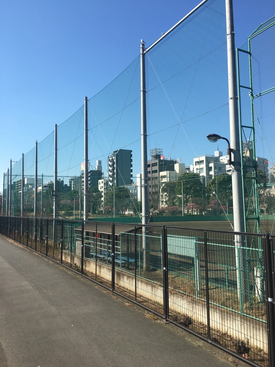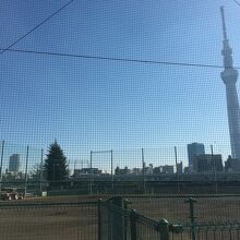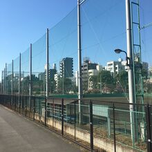 高い金網で仕切られ、グランドが綺麗に整備されていて、ベンチもありましたがナイター設備はなかったです。少年ならホームランを打っても高い金網なので球場外には球は出なさそうでした。公園内の隅田川沿いにあります。