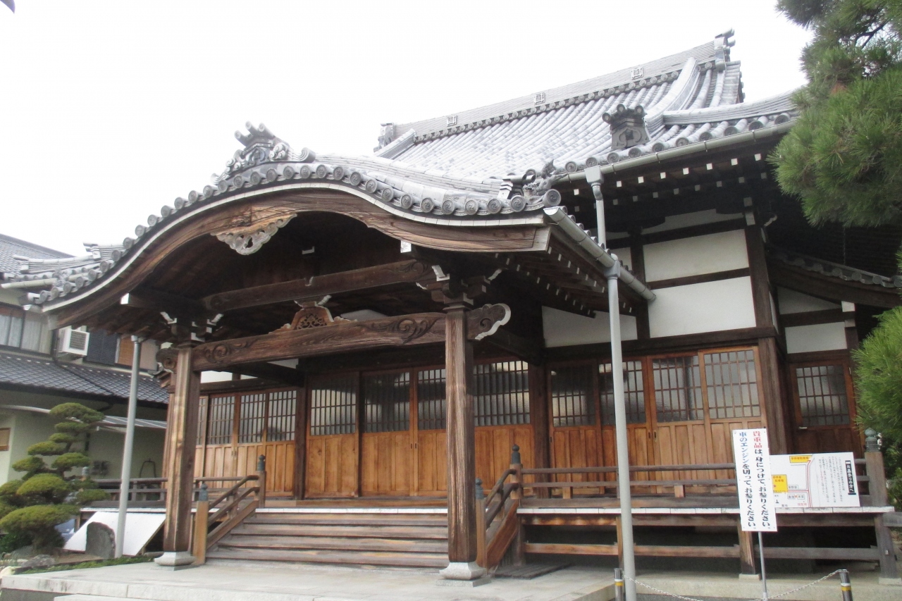妙安寺は吉祥寺の北隣です。少し上り坂で境内に入るのが、お寺さんの雰囲気として良いです。本堂に進むと、反り上がった屋根の本堂の前面にドーンと立派な破風があります。本堂の大きさに比べて異常に大きいのではないかと思いました。この本堂は、1941年(昭和16)に火災で焼失してしまったため、1943年(昭和18年)に再建されたものだそうです。太平洋戦争のど真ん中なのに、よくこんな立派な建物を造れたものだと思いました。