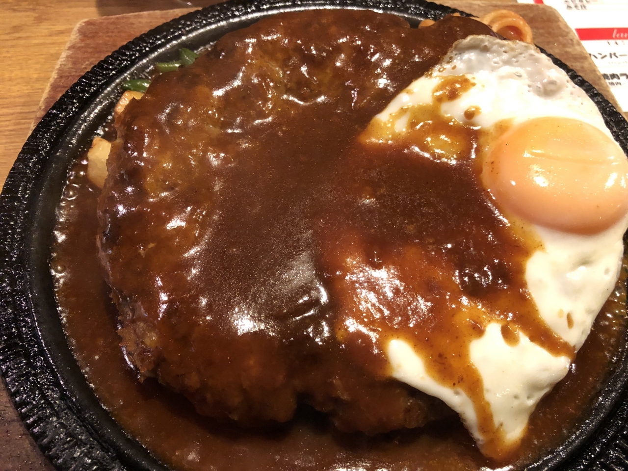 単品でハンバーグを注文したが、運ばれてきた鉄板の上のハンバーグの量に度肝を抜かれた。