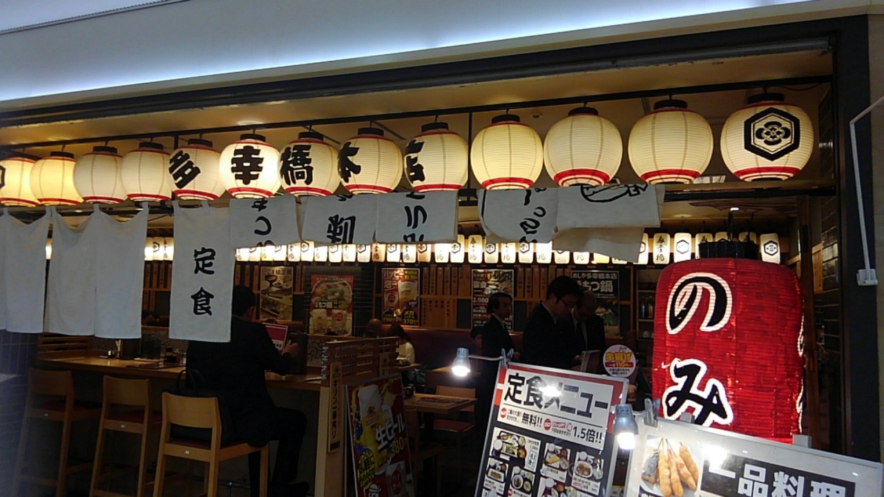 福岡の博多駅直結の博多駅地下街にこちらのめしや多幸橋本店が入っています。こちらのフロアには福岡の美味しい店が沢山入っていて、選ぶのに何度も廻りました。こちらのお店には飲み屋さんのようですが、定食もありもつ鍋もあり、とても元気なお店でした。テーブル席もカウンター席もあります。