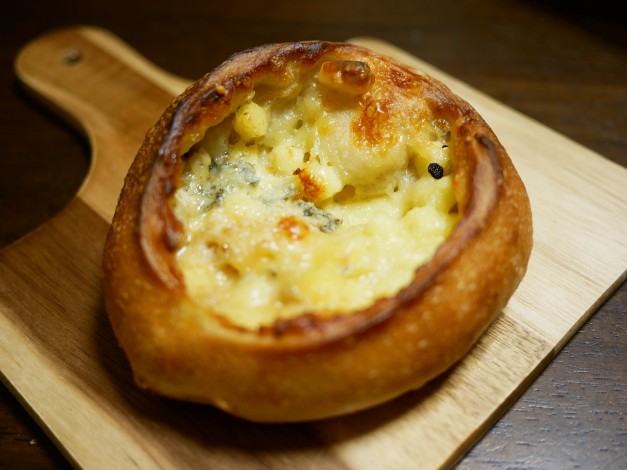 今回初めて購入した「パン・オ・フロマージュ」は、青カビ、モッツァレラ、ゴーダ、プロセスの四種のチーズをライ麦入りの生地で包んだ、大人仕様のチーズパン。多分、ワインに合います。アルコール飲めないから、試してないけど、、、チーズのコクと旨さが際立つパンで、此方も素晴らしく美味しかった。