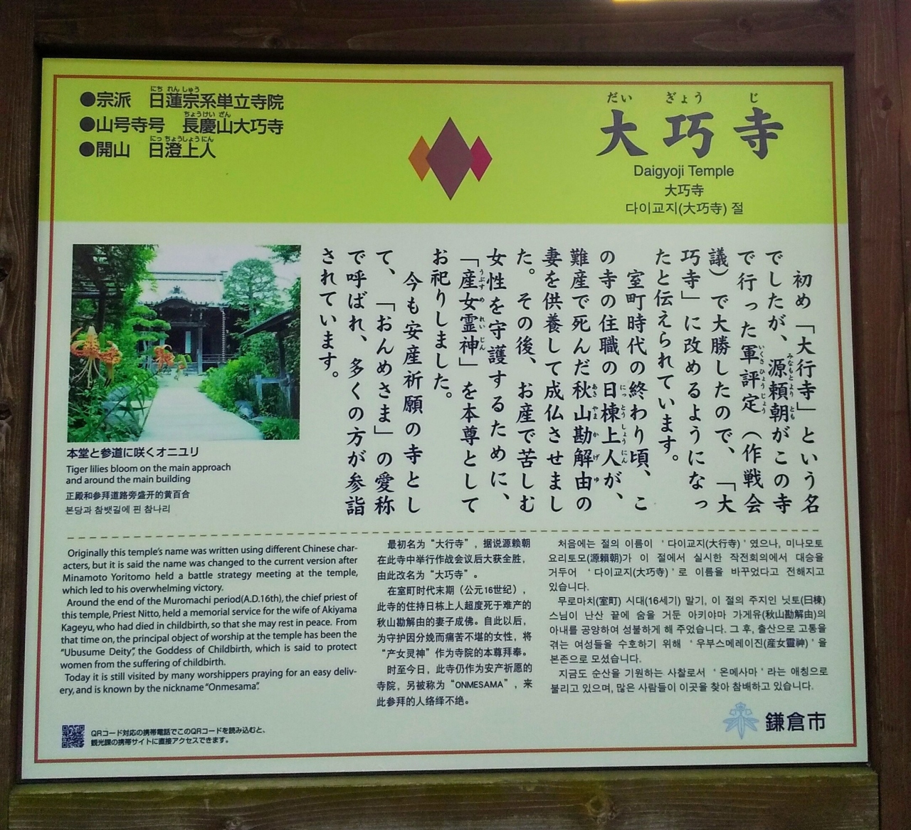 もとは「大行寺」と称していましたが、源頼朝の命により「大巧寺」に改名したそうで、「だいぎょうじ」と読みます。