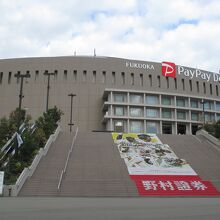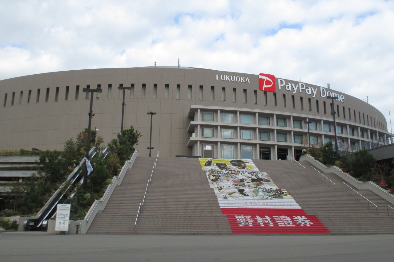 百道地区のランドマーク・paypayドームに行きました。宝塚の大階段も負ける正面階段が印象的でした。12月ですから野球はもちろんやっていませんが、何か催しものでもやっていれば、入ってみようと思っていましたが、訪れた日は何もやっていませんでした。コロナ下ですから、安易にはイベントも出来ませんからね。王貞治ベースボールミュージアムもある付属建物にHKT48劇場がありました。町中ではないのですね。