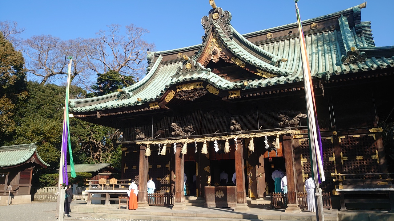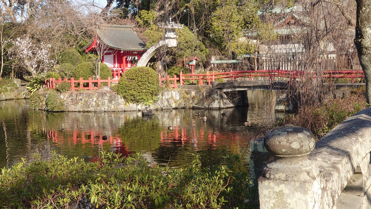 三島の街の中にありますが、さすがは伊豆一の宮。庭も建物も立派で荘厳な神社でした。駐車場は広くてアクセスしやすいですが有料です。天皇誕生日の祝日の朝に訪れたら宮司さんや巫女さんが本殿に集まっていました。