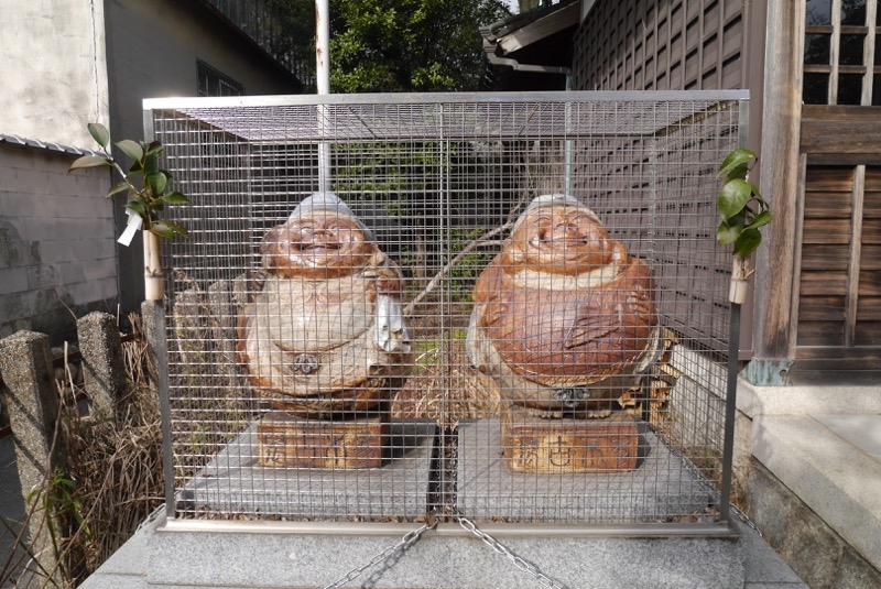無人の神社です。ばんこの里会館のすぐ目の前(道を挟んで前)にあるので、わかりやすいです。信楽焼の町にあった神社に以前訪れた際、狛犬が信楽焼だったので、ここにもそういったことがあるのかな〜と思ったら、狛犬はふつうの石でしたが、その奥側に萬古焼のえべっさんのような神様がふたり!厳重に金網に入っていましたが、出会えてうれしかったです。