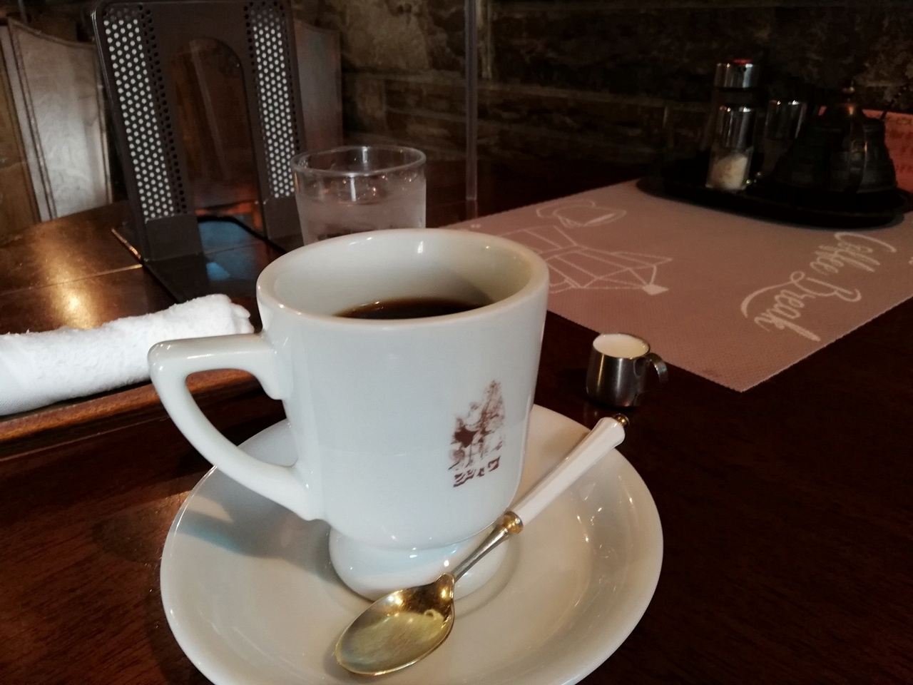 ホット(イタリアンブレンドコーヒー450円)を頂きました。ライト系のテイストで美味しかったです。店内が結構狭いので、人と話しをすると、周りに筒抜けの様な感じのお店です。店内のステンドグラスが素敵との噂もありますが、個人的には、そこまで素晴らしいとは感じなかったです。