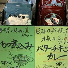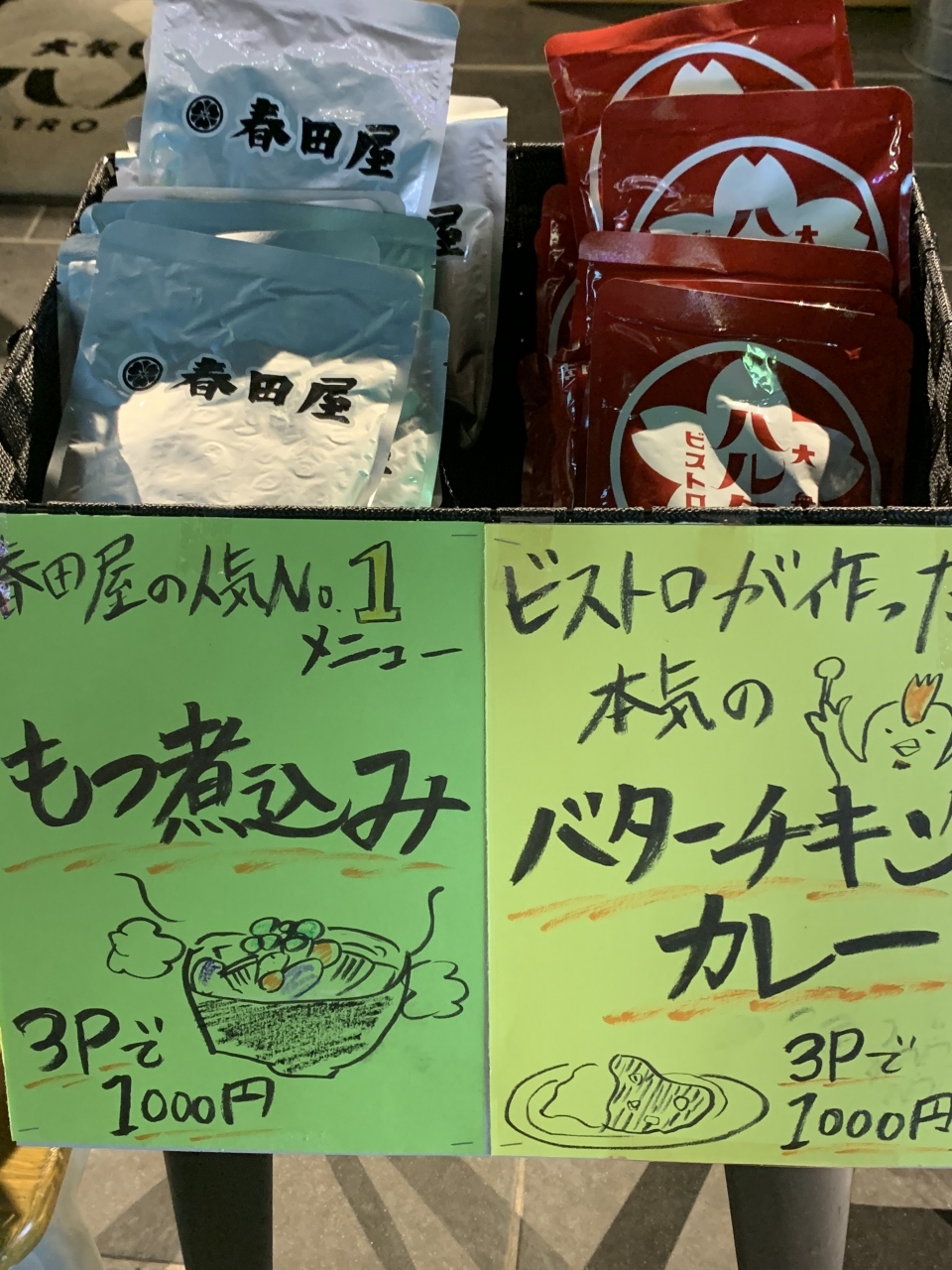 「もつ煮込み」や「バターチキン」のレトルトが3Pで1000円で購入できます。