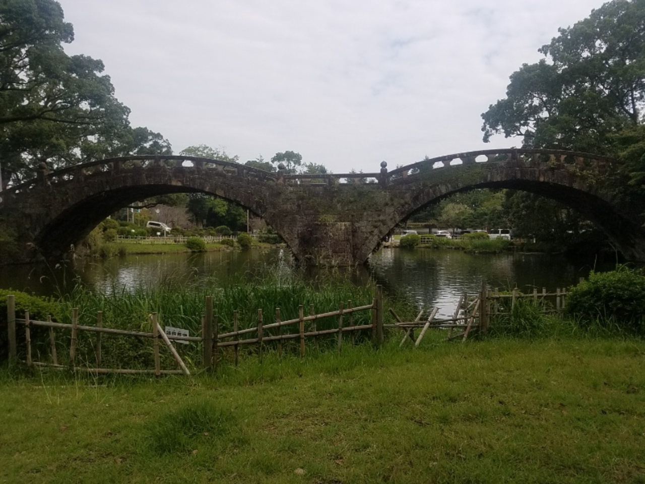 諫早神社から本明川沿いを歩いて12~3分です。元々は本明川に架かっていたものが諫早大水害の後に諫早公園内に移設されたそうですが単純になぜ本明川に架け直さないのだろうと思ったら水害を教訓に川の幅を広げたからなのですね。水害の説明を読むと気楽な観光気分だけではいられなくなりました。ここを訪れたら是非、橋の歴史にも目を向けてみてください。