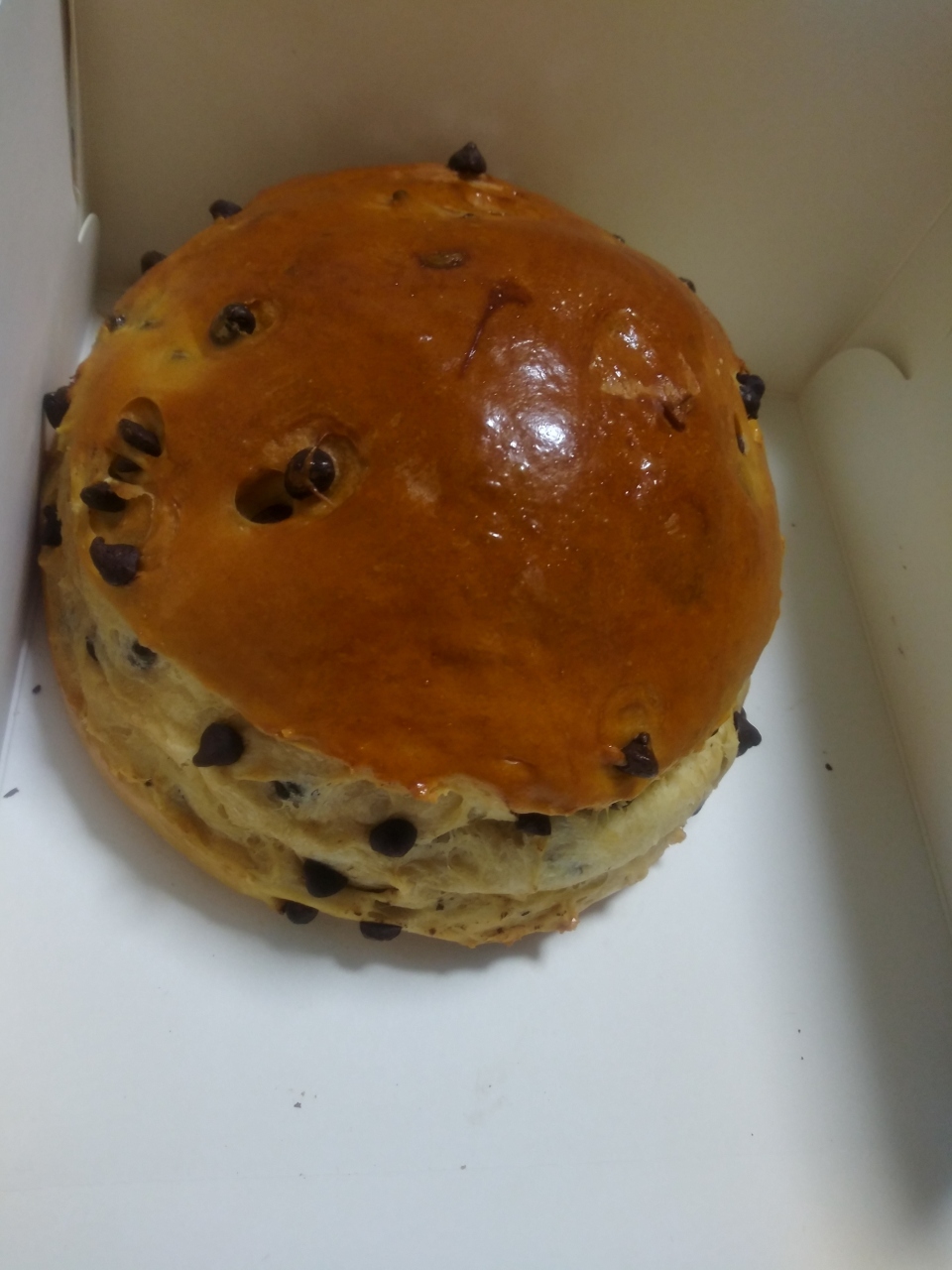 とっても可愛らしいお店だったので、目的もなく入店してしまいました。どの商品が人気なのかも分からなかったので、とりあえず目の前にあった商品を選びました。見た目は大きなチョコチップスコーン。帰宅してナイフで切ってみると「パン」でした。チョコチップの味がとても好みでした。パン生地も美味しかったです。