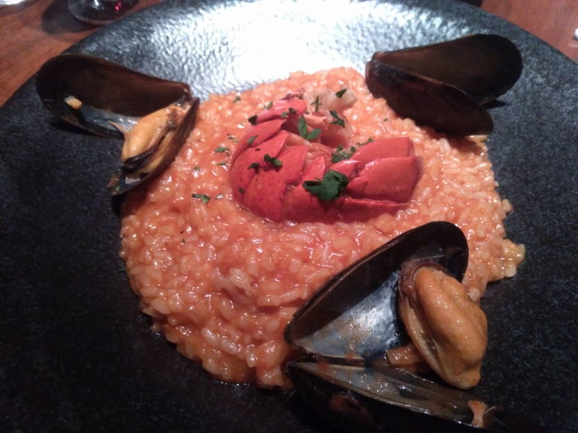 「THE RIGOLETTO OCEAN CLUB」で軽く飲むことにしました。「グラスワイン(白)」605円を「オリーブ」330円と「タコのガリシア風」550円をつまみにしていただきました。呑み終わったところで「オマール海老のリゾット」1540円をいただきました。「タコのガリシア風」も「オマール海老のリゾット」も味が良く、いい時間を過ごすことができました。今度はランチでピザやパエリアなども試してみたいです。