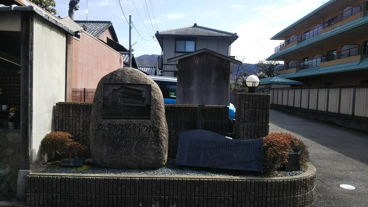 あまりこの通りは観光できた人は歩かない道かなとは思う。吉田屋跡の駒札は廃れてて読み取りにくいし、立命館大学の草創に関しての石に刻まれた文字も石と同じ色で結構読み取りにくい。吉田屋跡でもあり立命館大学のはじまりの土地でもある。