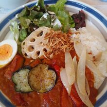 カレーをいただきましたがお野菜がたっぷりですごく美味しかったですし、カレーを食べた後なのに胃が重くならなくてよかったです。オリジナルブレンドティーも美味しかったです。店内は女性がほとんどでした。