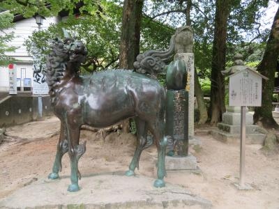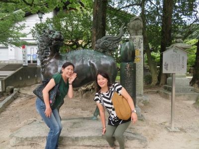 今回、お友達と一緒麒麟像の前にてパチリ♪この麒麟像は空想上の聖獣のようで、徳をもって世を治める王者の象徴とされているようです。嘉永5年(1852)にご奉納されたようです。