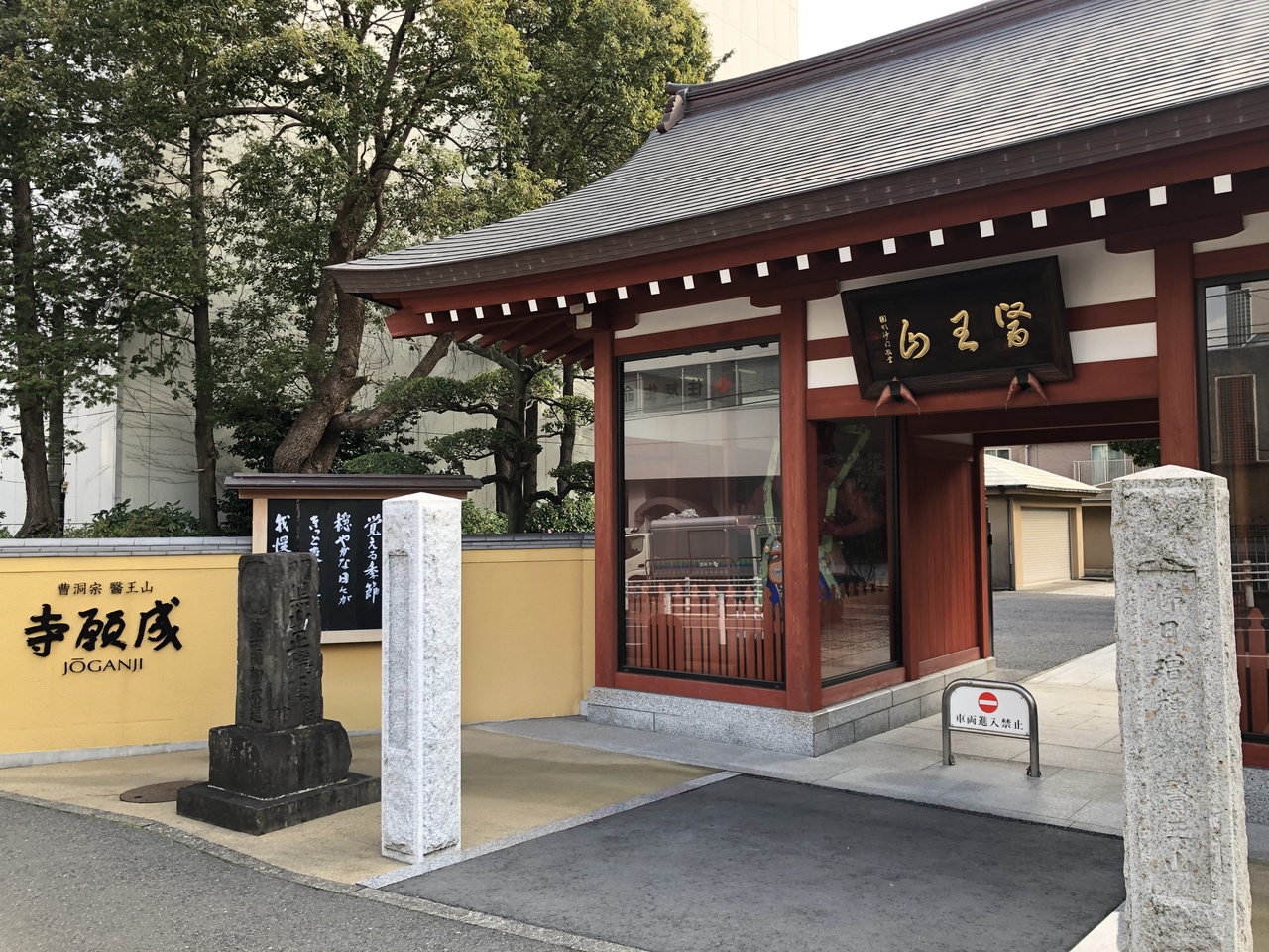 寺社消失を受けて明治時代に石川県から今の横浜市に移転してきた總持寺のために、本来このお寺の境内であった土地を譲ったのがこのお寺です。総持寺へ向かう小道に見つけました。山門の二像はカラフルでどこか可愛い印象を受けました。