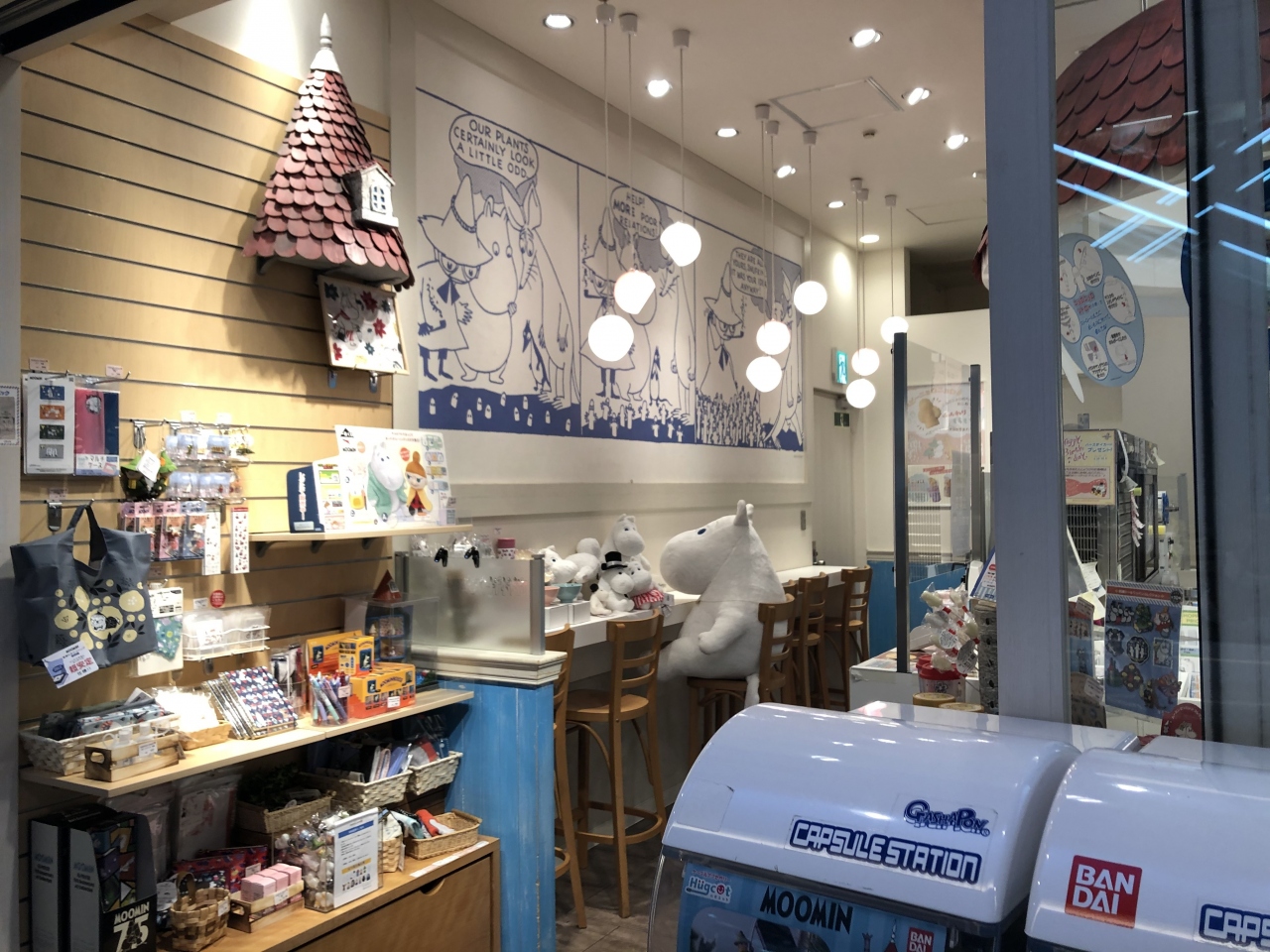 桜木町駅近くのランドマークプラザ1階に、ムーミンスタンドがあります。カフェコーナーには、全22種類ある「ニョロニョロのたね」がメニューの中心になっています。店内にカウンターがありますが、席の半分にはムーミンのぬいぐるみが座っていて、ほのぼのした雰囲気になっています。