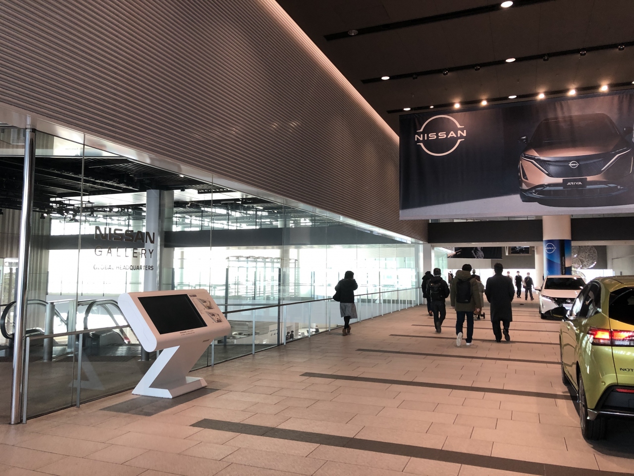 横浜駅東口から、マルイシティ横浜の先にあるはまみらいウォークを渡ったところに、日産グローバルギャラリーの入口があります。メインは自動車の展示スペースですが、日産の会社の歩みや、販売された自動車の歴史なども紹介されています。特に、日産の昔の自動車の実物展示は、見ごたえがあります。