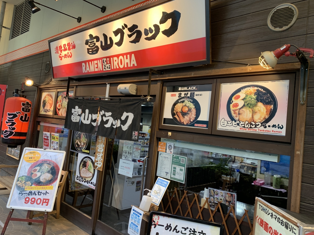 もうすぐ海老名での仕事も終わるので今日はビナウォークの一番奥にあるラーメン屋さんの並ぶところで富山ブラックをいただく。
