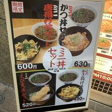 おそば・うどん以外に「かつ丼」「天丼」などもあるので、しっかり食べたい男性にも。