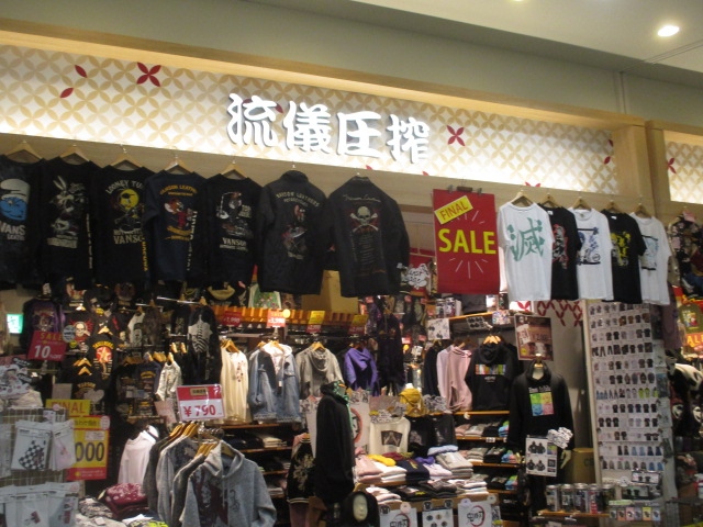 イオンの専門店街のお店は、大体すっきりした雰囲気で見やすくなっています。しかし、こちらは店内にゴチャゴチャと商品が並んでいて、ミニドンキホーテという雰囲気のお店です。何といってもユニークなTシャツがたくさんあって、イベントに使うのにいいですよ。