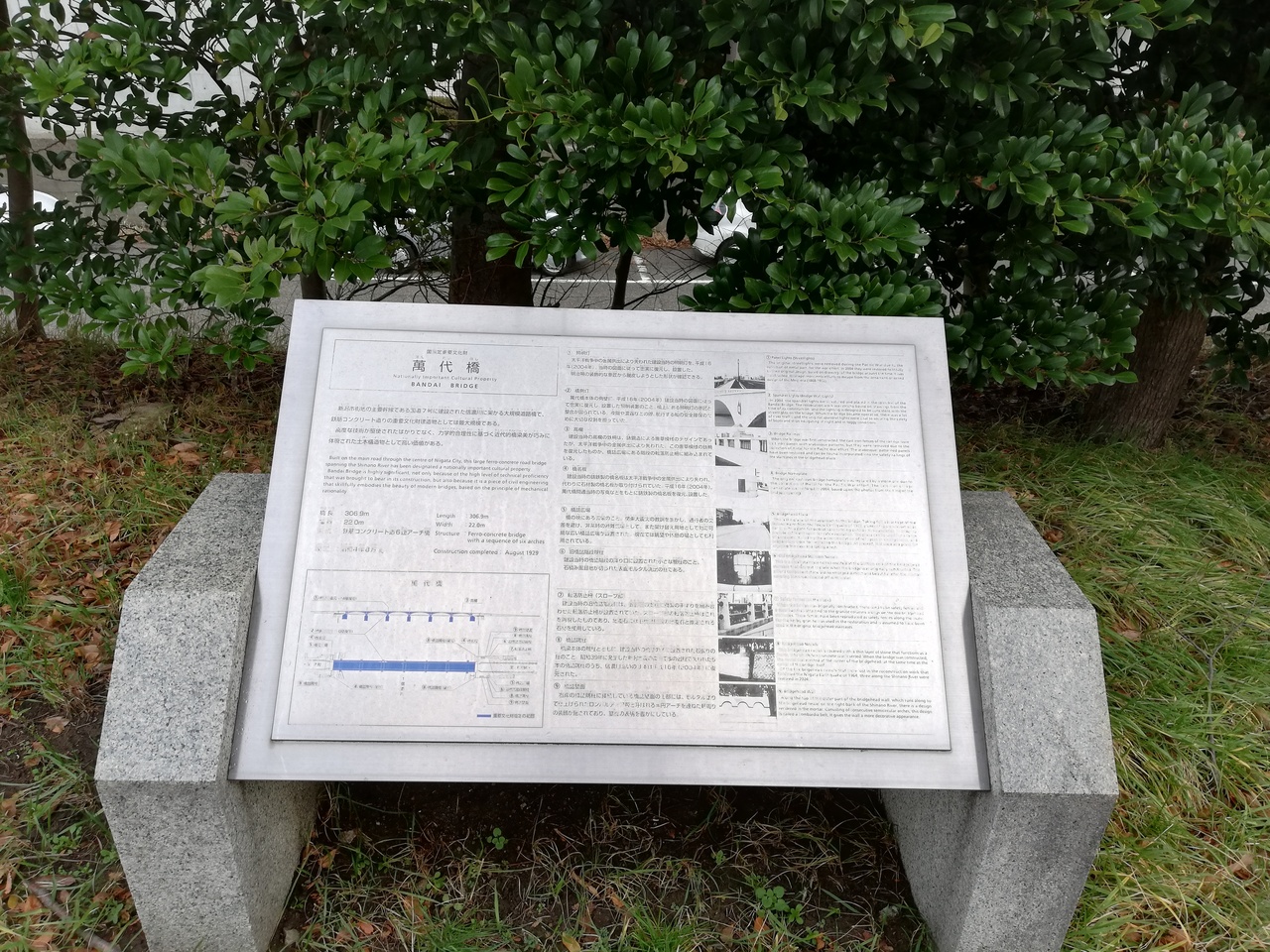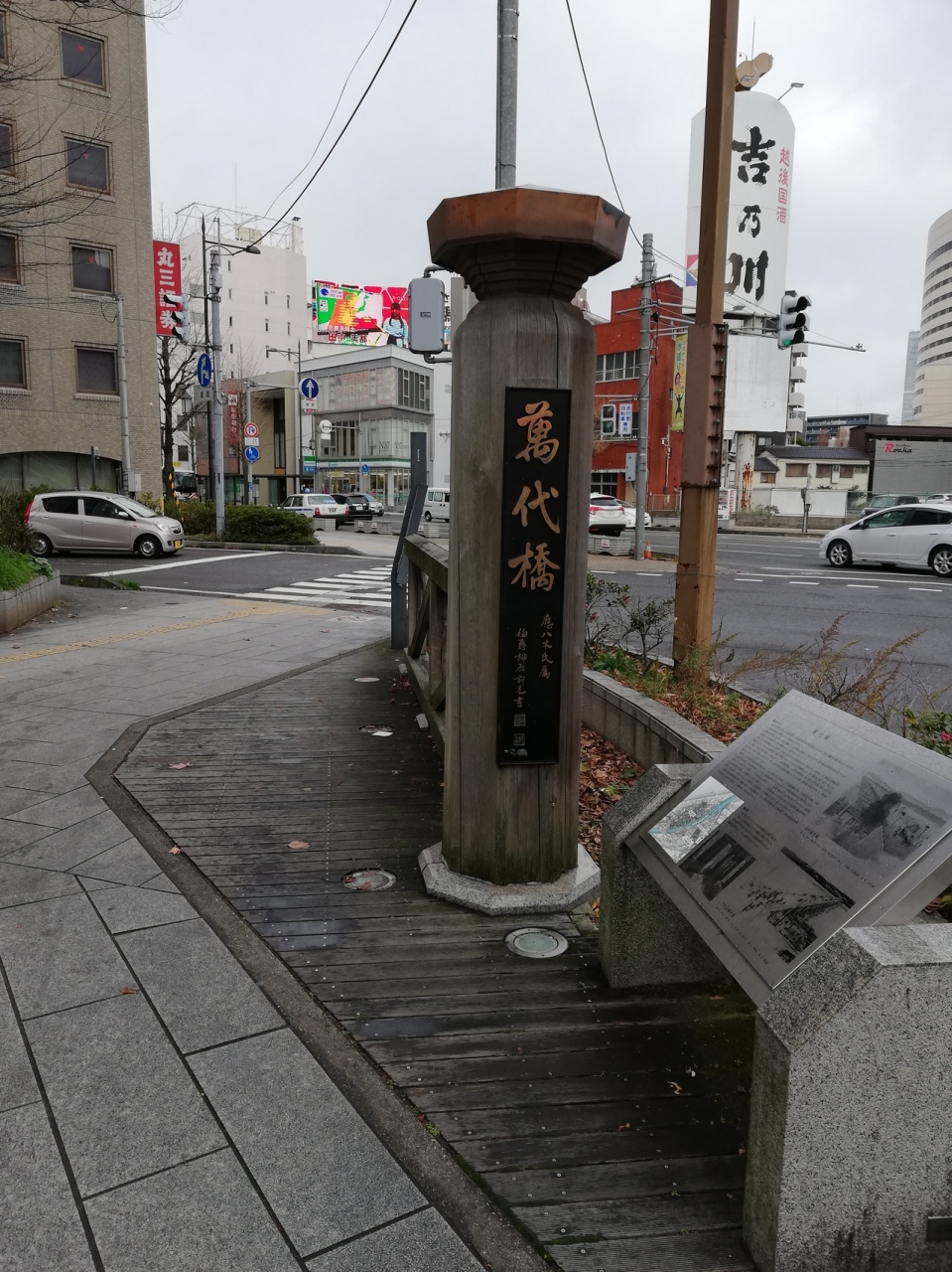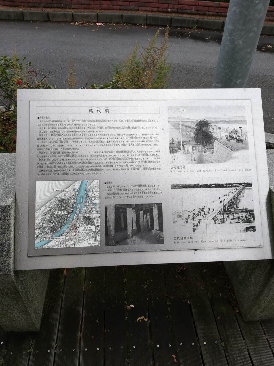 萬代橋の手前には、旧萬代橋の東詰の碑があり萬代橋の歴史を知ることができます。