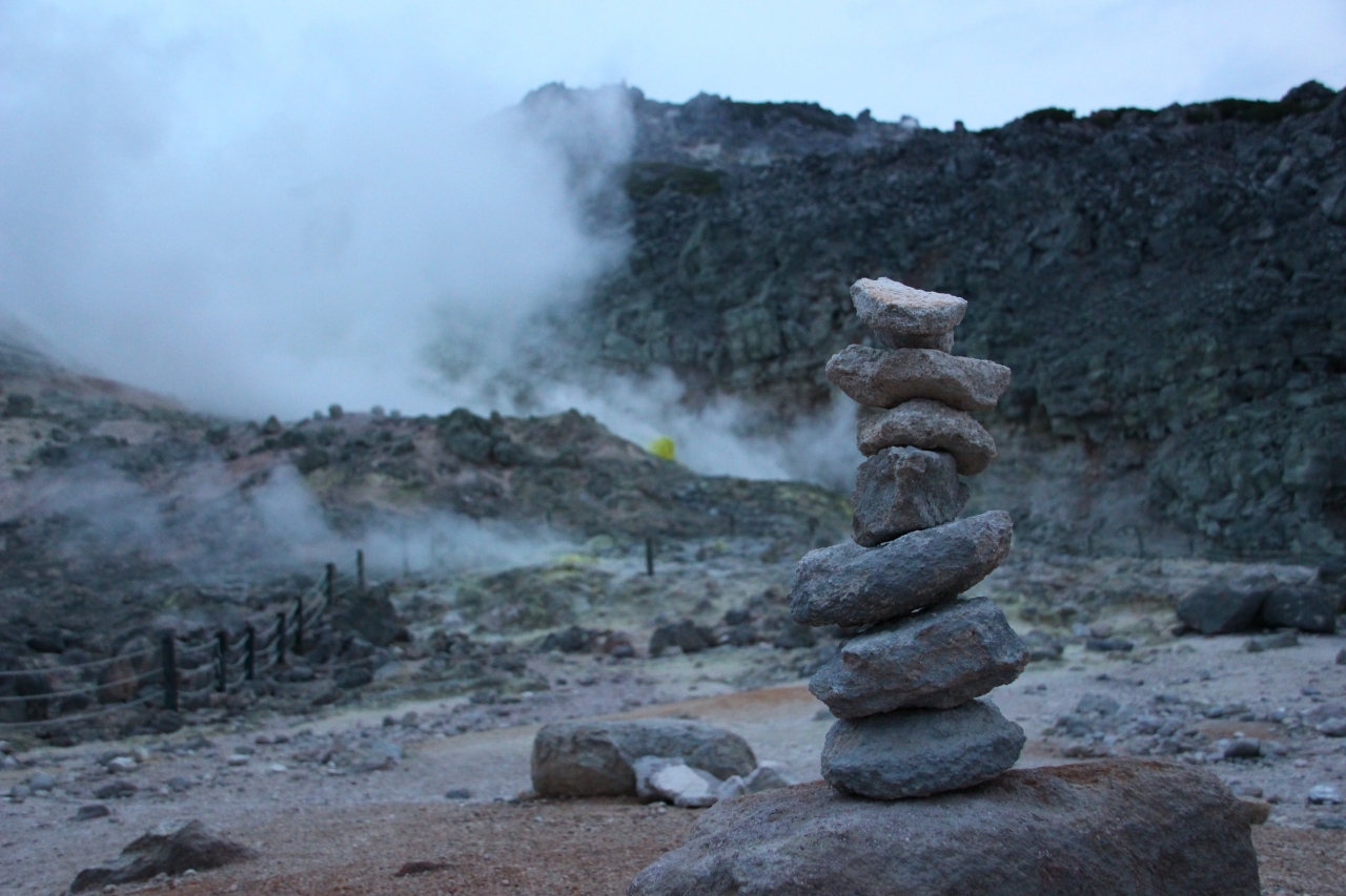 釧路から網走まで北海道を縦断する旅行中、たまたま近くを通ったので立ち寄りました。アトサヌプリと呼ばれる硫黄山で、びっくりするほど噴気孔のすぐ近くまで近付けます。夕方だったので人もいなくて、なんだか宇宙みたいでした。笑