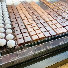 ボンボンショコラは温度調整のされた個室にあり、20種類くらいあります。