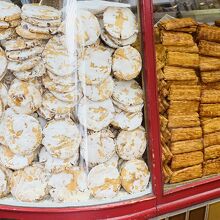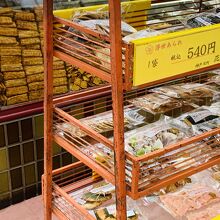 「古今あられ」「浮世あられ」が ショーケースに ズラリと並んでいて