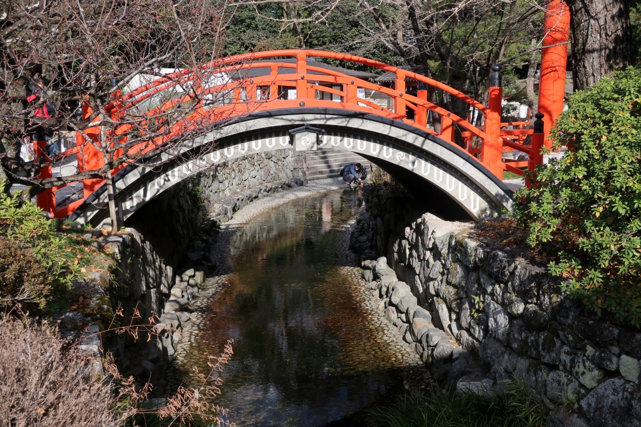 現地の説明版には、比叡山山ろくの八瀬御蔭山から神霊を本社へ迎える御蔭祭の折に御神宝を奉安する神殿とある。橋殿は上賀茂神社にもあることから古いしきたりにのっとっての社殿なのだと想像がつく。ちょうど御手洗川の上にかかる橋のように建てられており、あらゆるものを流れで清めてから標の内へ持ち込む舞台なのかもしれない。