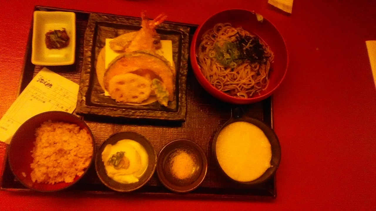 近くであった説明会の後、会場の近くで以前グルメ雑誌で見て気になっていたので立ち寄りました。店の看板商品の蕎麦と自然薯に加えて天ぷらも付いているのでお得と思ってセットを注文しましたが、天ぷらが油っぽく、全体的に味もいまいち。厨房が見える席でしたが、愛想も悪く印象は良くありませんでした。リピートはないです。