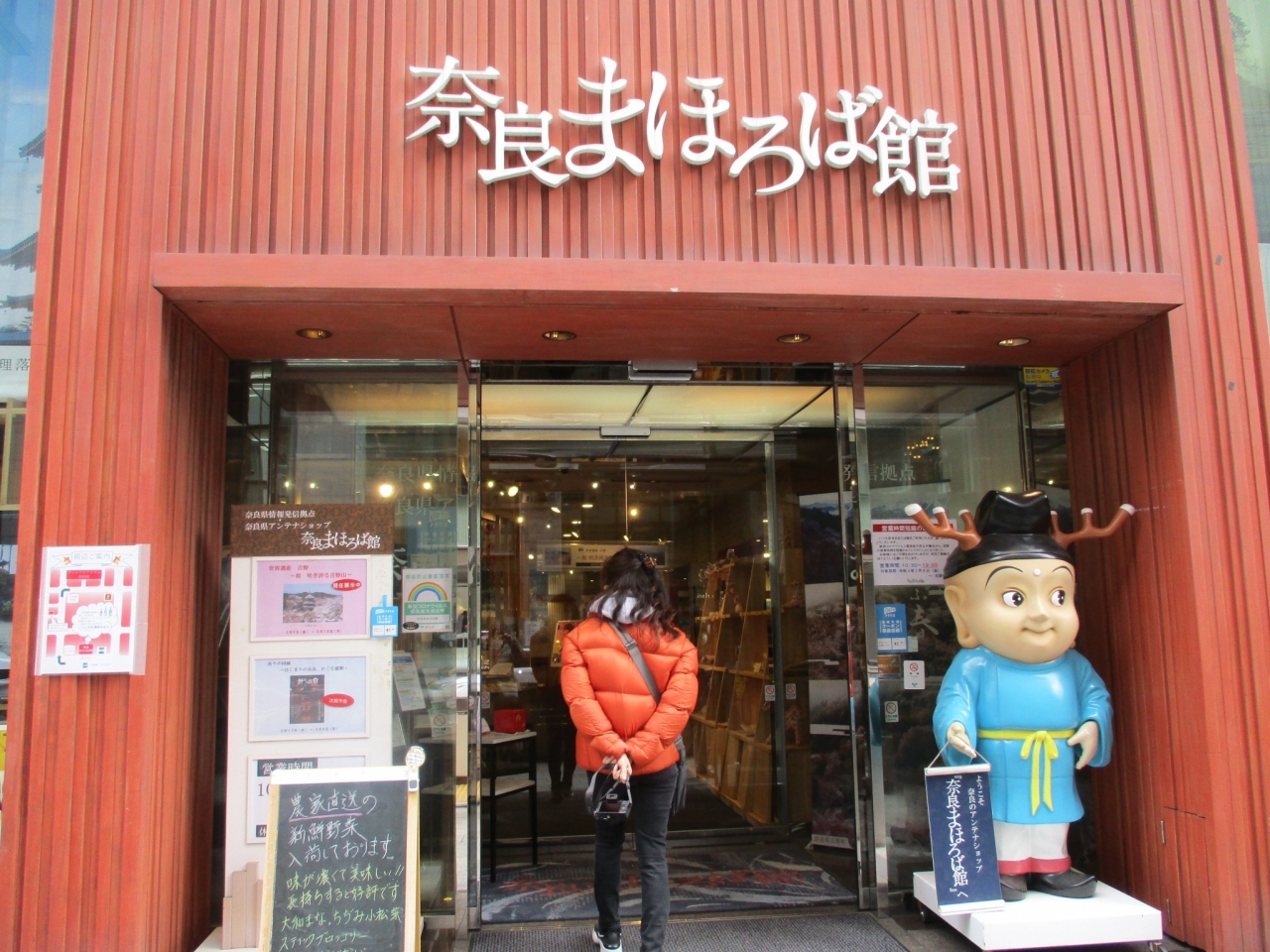 日本橋の中央通りにあります。奈良県のアンテナショップです。このあたりにはいろんな県のアンテナショップがあり、それぞれ個性がありますが。奈良は入り口にせんとくがいて、入り口も目立っています。入りやすい雰囲気です。中は奈良の名産品の販売や観光案内など。思った以上に広く、充実していました。