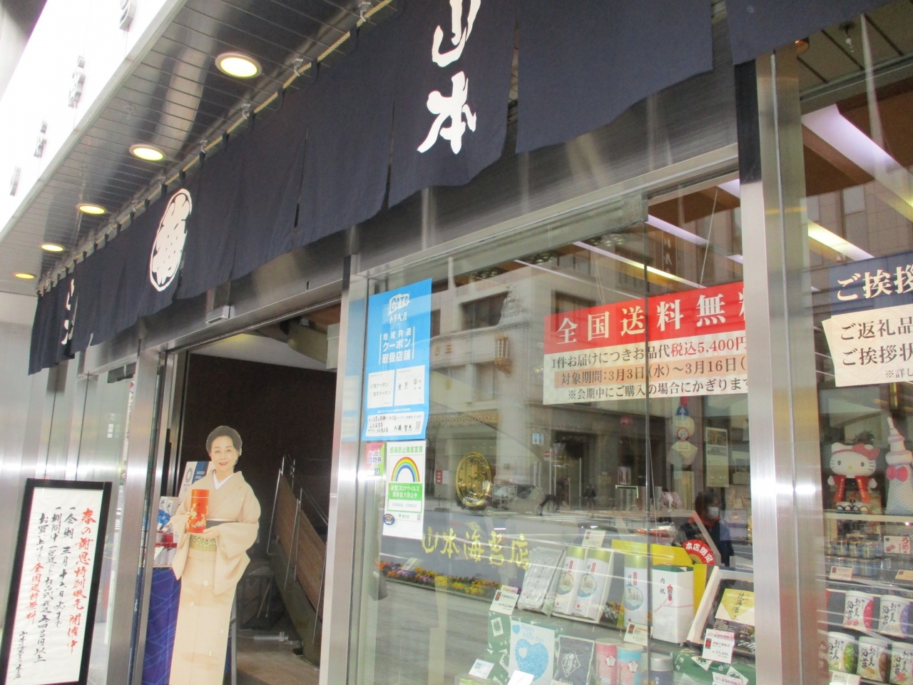 日本橋近く、中央通り沿いにお店があります。有名な海苔の老舗店です。入り口にある看板の女性がお出迎えしてくれます。お店はとても広いです。入ってすぐのところにも奥にも商品がいっぱい。ゆっくり品選びしたくなります。日本橋らしい絵柄入りの缶入りを購入しました。買いやすいものから高級品まであります。焼きたて海苔もありました。とても親切なご対応で買ってよかったと思いました。