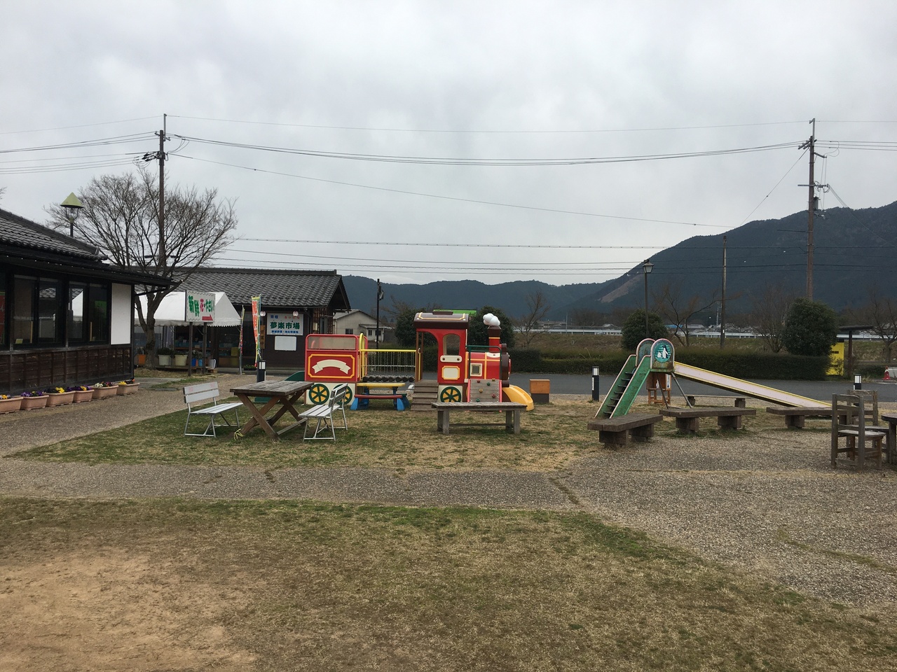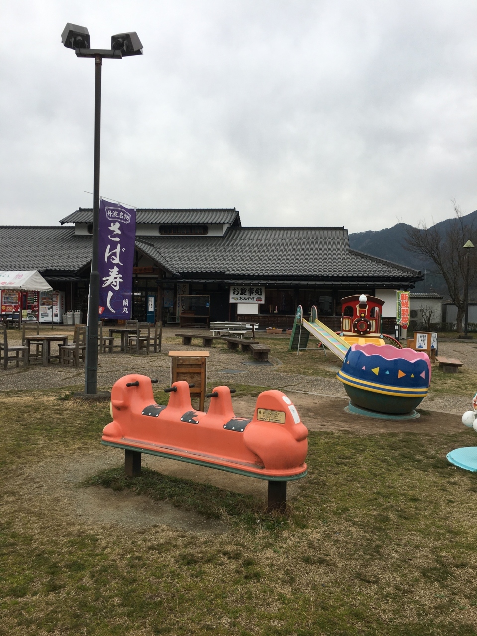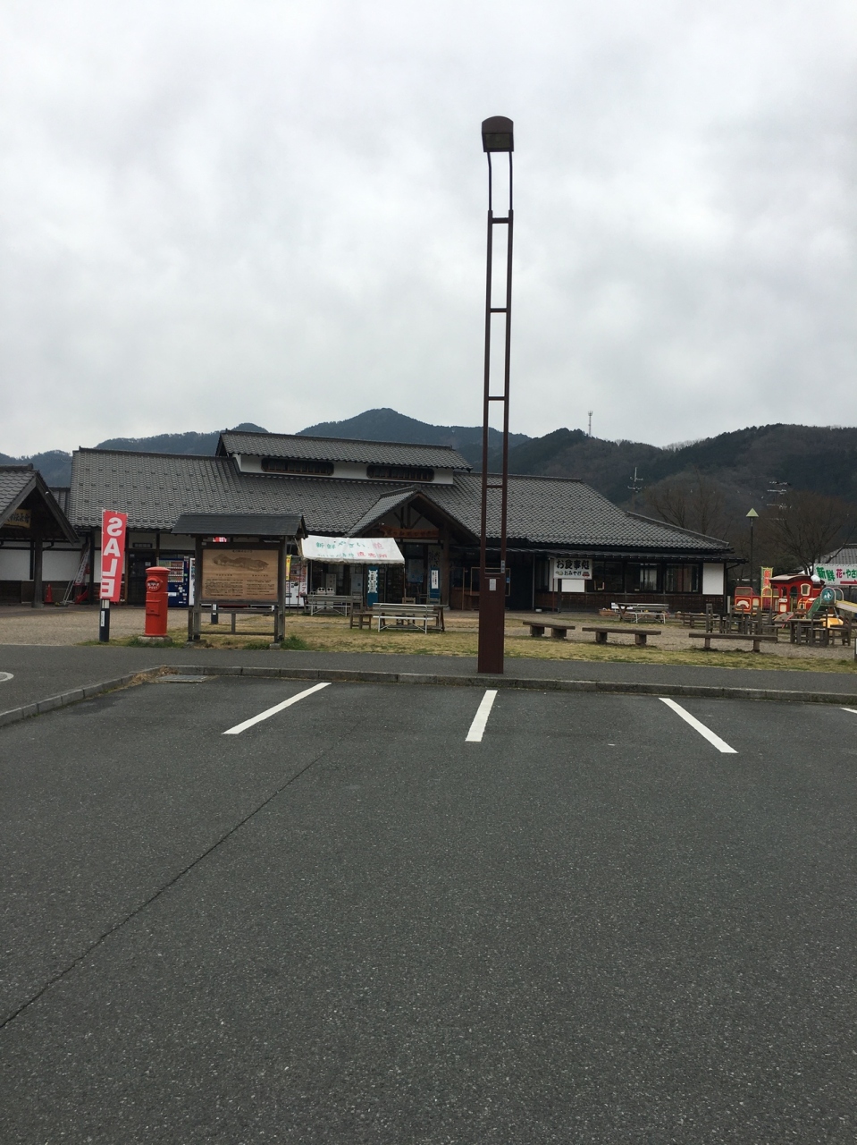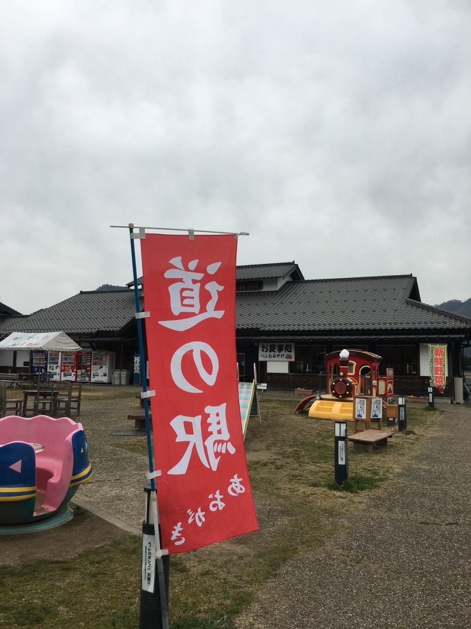 駐車スペースが広い場所で、観光パンフレット等が専門に置いてある建物がありました。メインの建物では地元の土産品や弁当も売っていて、隣の建物では地元の野菜も売っていました。小さな子供の遊戯施設場がありました。
