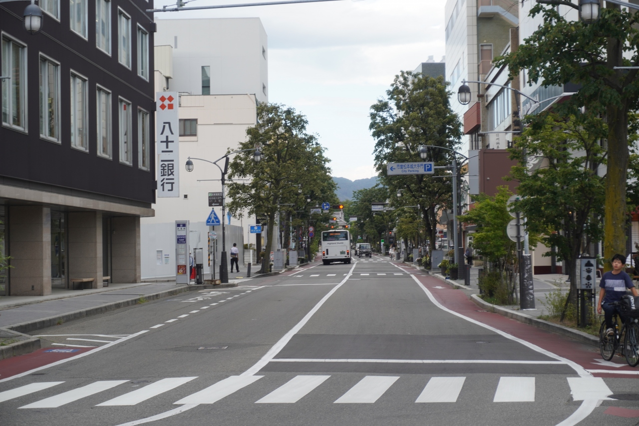 大名町通りは、松本市内の千歳橋から松本城に続く約300mのメインストリート。通り沿いには観光情報センター、大名小路井戸も。そんなのを眺めながらぶらぶら歩くと松本城の正面入り口が見えてきて、ここが松本市の中心であることに気が付きます。