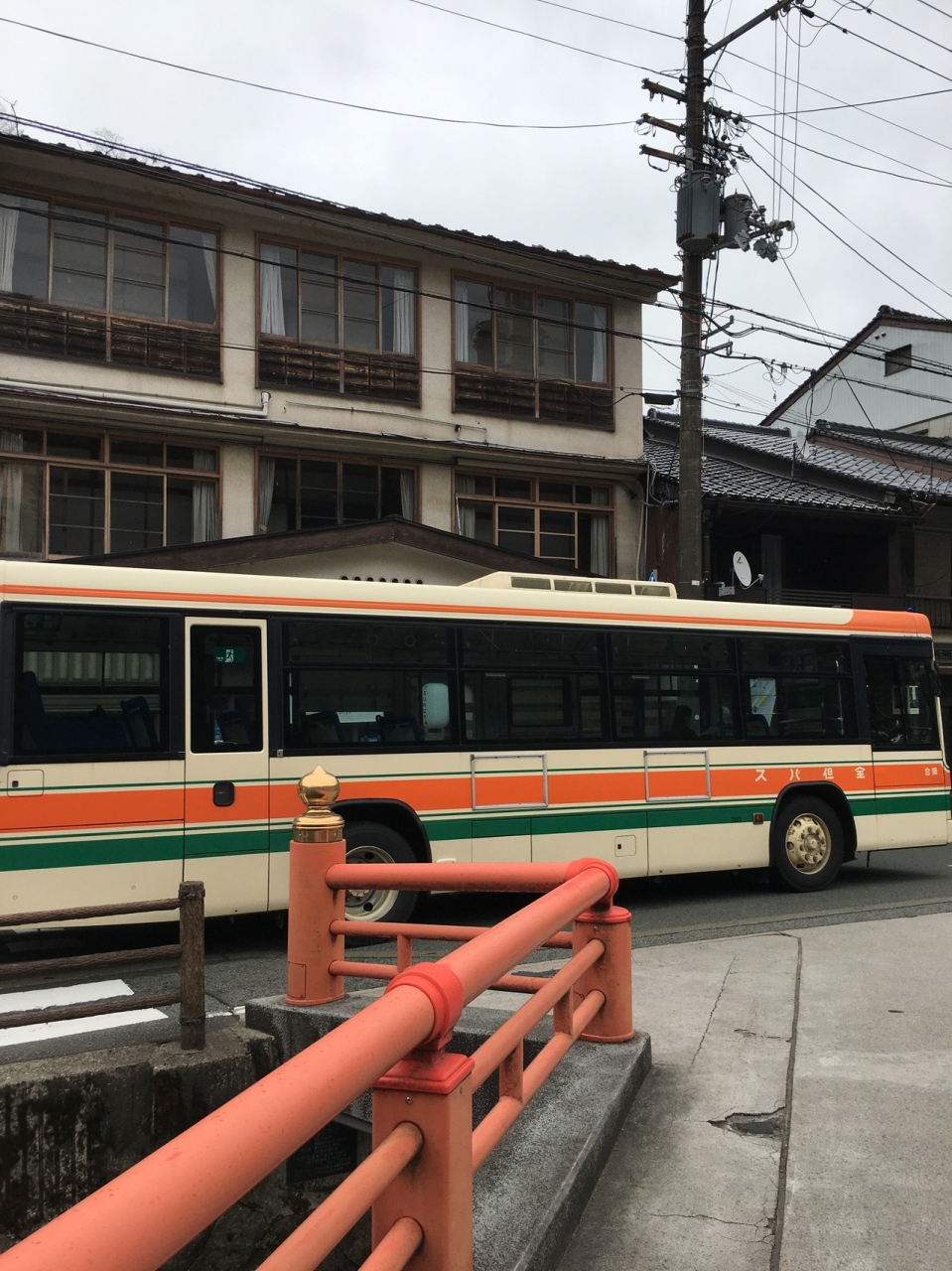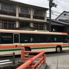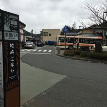 城崎温泉駅前に綺麗な案内所があり待ち合わせには便利で城崎温泉の地図等も置いてあり、カウンター席4つあり、充電も可能です。路線バスバスは昔ながらのバスで黄色ぽい色でした。高速バスは城崎温泉駅前から発着しています。