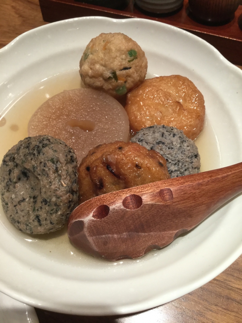 寒い日ときこそおでんが食べたくなりますね。鍋の中であたたまっているおでんを見ながらカウンターで何を頼むか考えたり、お酒を飲みながら話したり、そんな雰囲気が好きです。おでんは出汁がきいていて美味しいです。
