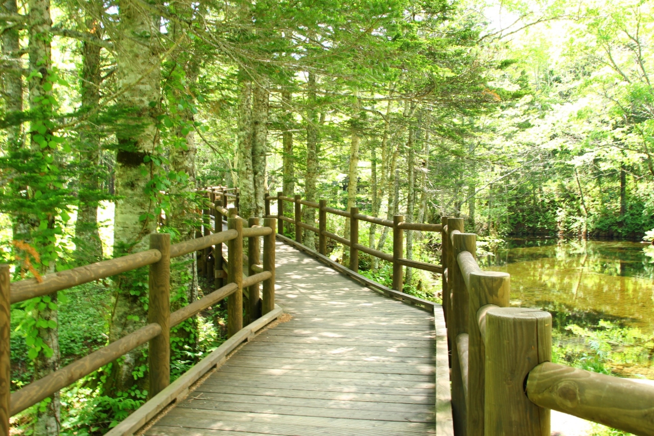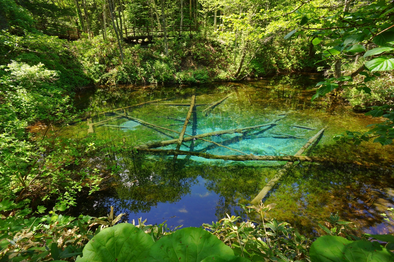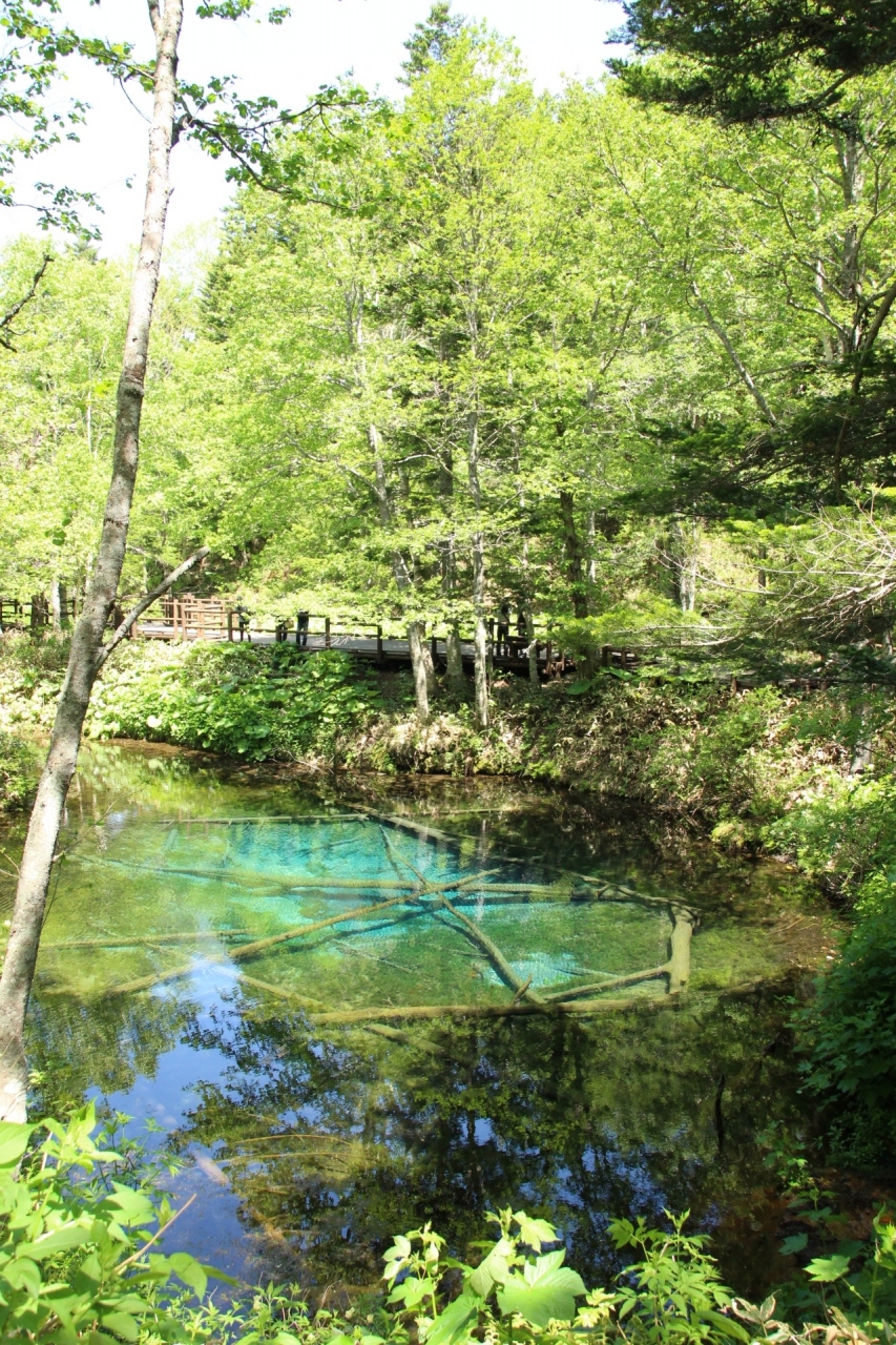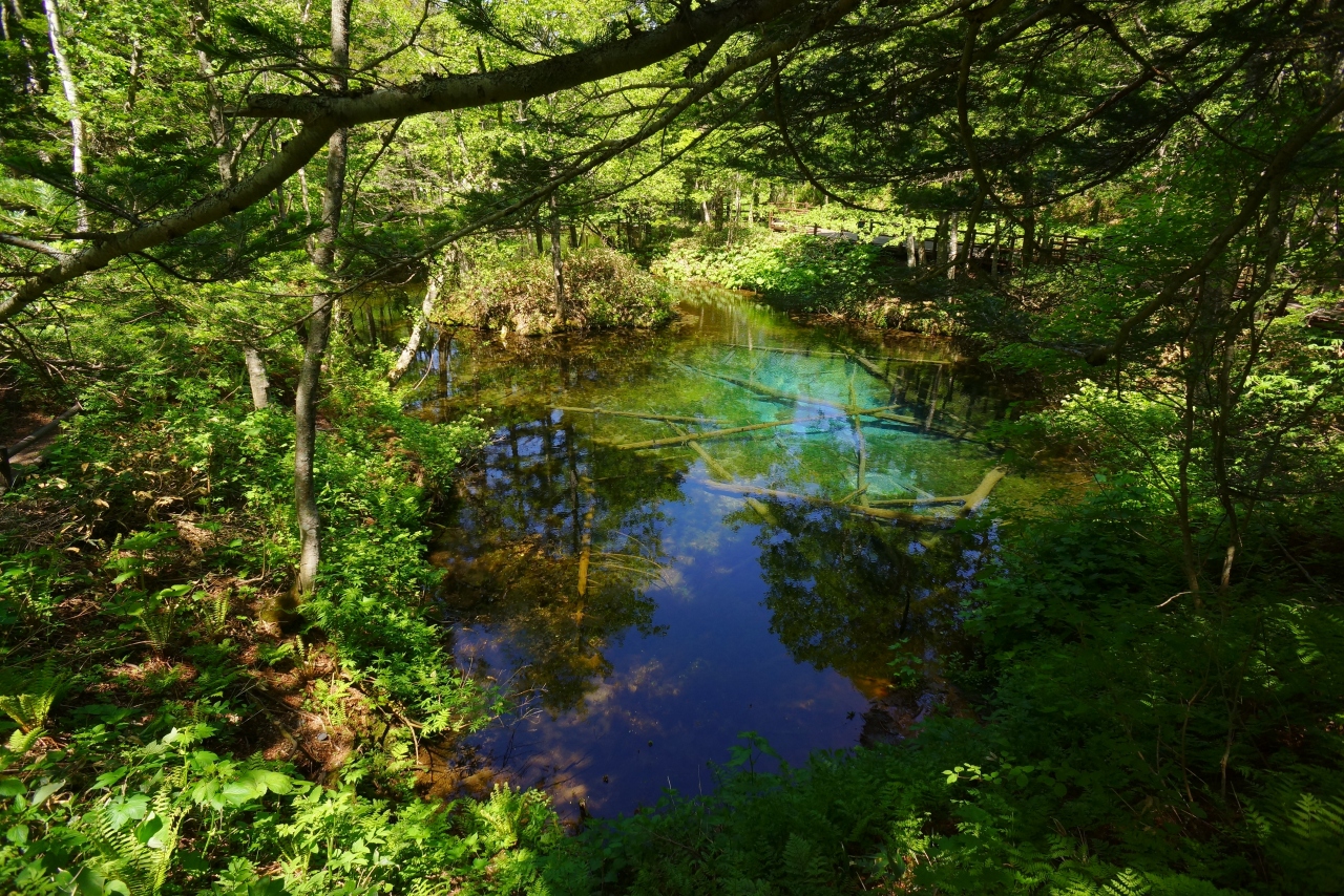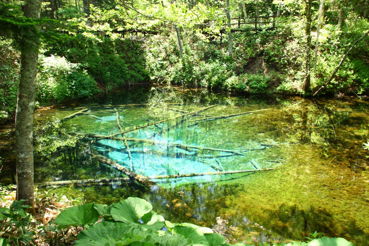 細い道を車で進んだ先に、突如現れます。近くまでいくと、その色はまさにエメラルドグリーン!緑に囲まれた中にある透明度の高い池は、雰囲気があってとても神秘的。光の差し具合や見る角度によって、また違った雰囲気に見えます。