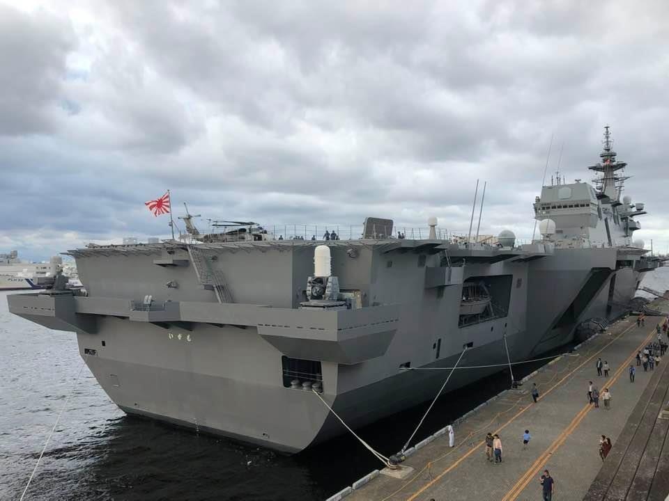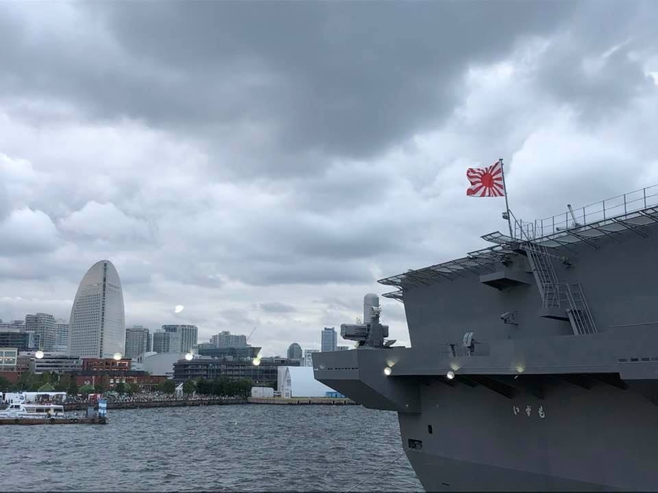 今回は海上自衛隊史上最大の自衛艦であるいずもが停泊していると聞いて週末に見に来ました。その大きさに驚きました。曇り空ではありましたが、日章旗が風にたなびいていました。