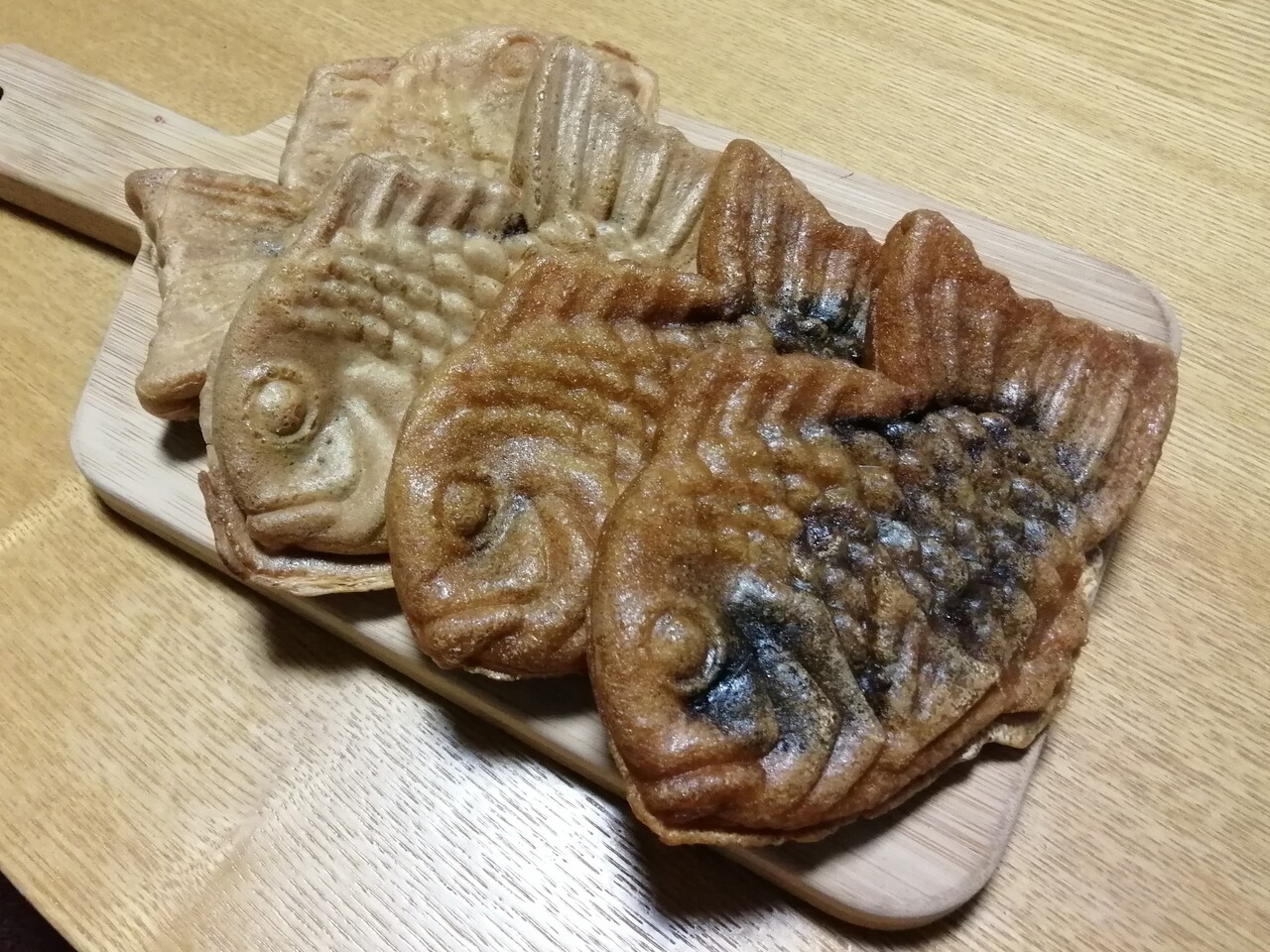 「スペシャルたいやき(あんこと&チーズ入り)160円」の“揚げ”(プラス10円)と「チョコたいやき(あんこと&チョコ入り)160円」を2個ずつ買いました(値段はすべて税込)。持ち帰って自宅でオーブントースターで焼き直して食べました。