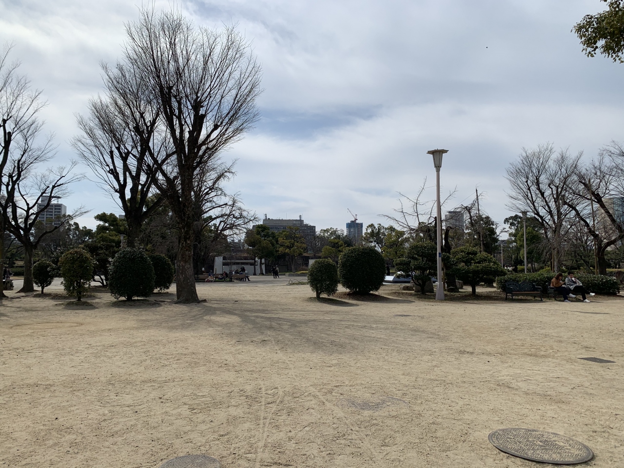 敷地がかなり広く、周辺はオフィス街や高層マンションがあるので休日に行くとランニングをしている人も多いです。