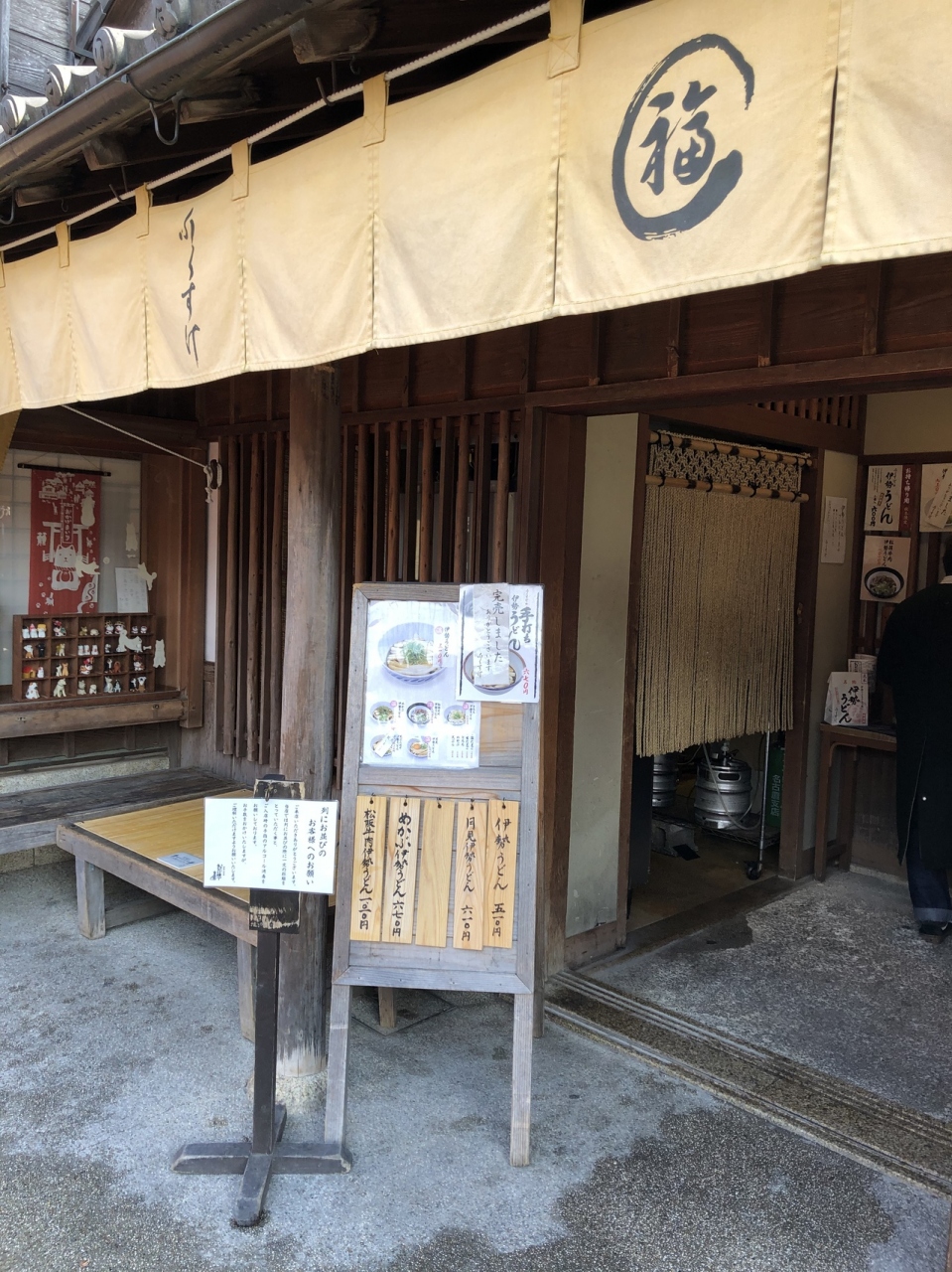 初めての伊勢うどん、卵入りのものを頼みました。味の想像がつかなかったのですが、実際はちゃんとおいしくて、一気に食べました。注文して席で待ち、番号を呼ばれるまで待つスタイルでした。