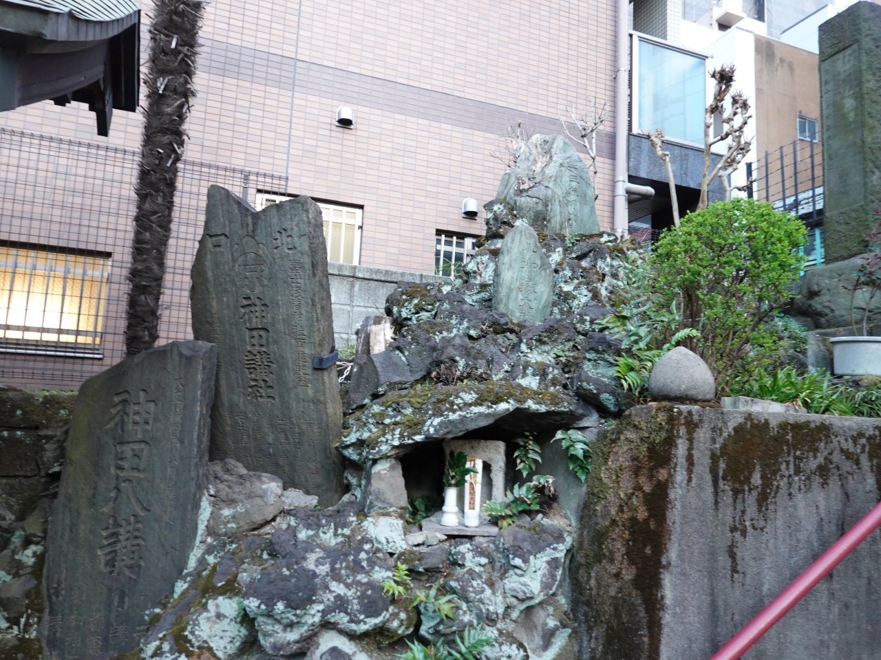 神田川沿いにある「柳森神社」の境内の一画に、富士塚のように盛り上がった部分があります。ここには5つの石碑が並んでおり、すぐ脇に詳しい案内板があります。正確には富士塚ではなく「富士講関係石碑群」として千代田区から有形民俗文化財の指定を受けています。富士塚は都内でも随所で見ることがありますが、このような形で富士信仰の歴史が見られるのはとても興味深いと感じました。