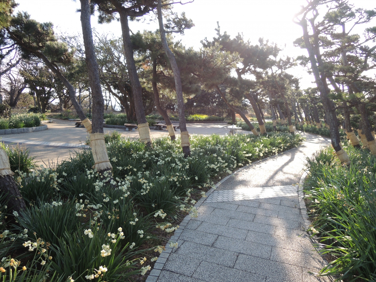 城ヶ島の東側に位置する城ヶ島公園は、時期になると水仙が咲き乱れてとても綺麗です。公園の入園料は無料。公園前には駐車場があるため車で訪れることもできます。広い芝生の広場が二つあり、公園の一番東端には安房埼灯台が立っています。