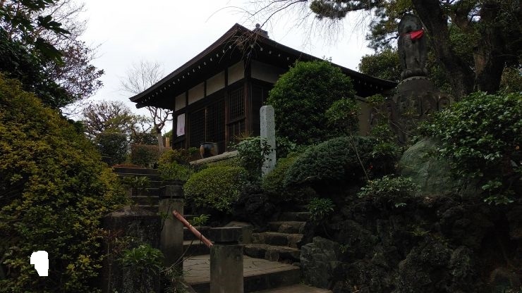 落合崖線にかかる地形に建っていると見られ、本堂は坂の上の方に立地していた。新しめの本堂で立派なつくりをしていたと感じた。