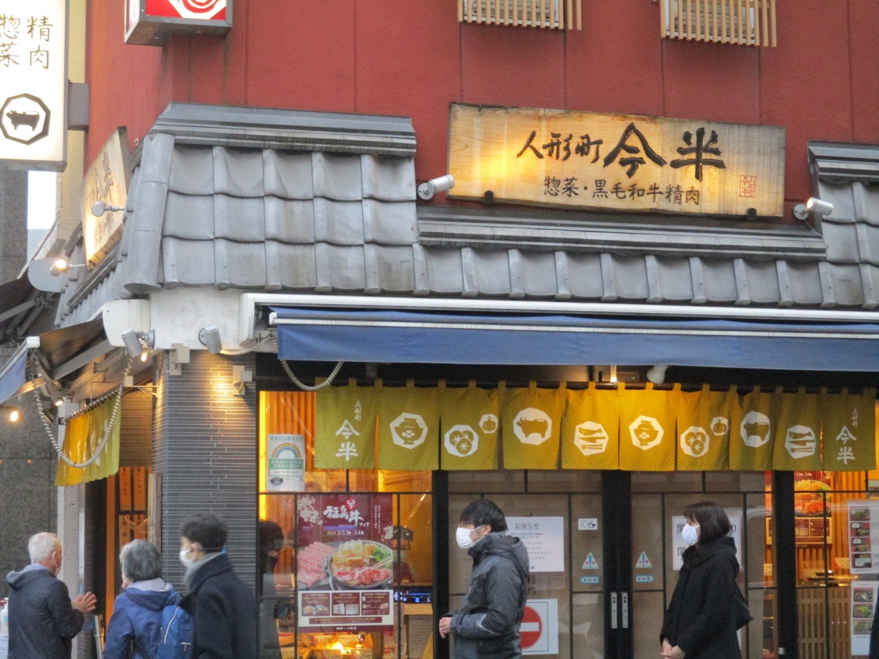 水天宮交差点の近くに行列ができているお店を見つけました。老舗のお店なのでしょうか。なんのお店かとみると、コロッケやカツなどのお惣菜やお肉などのお店でした。きっとおいいしいに違いないと思い、つい並びました。しばらく待ちました。コロッケは食べ歩きもしやすいように紙に入っていました。おいしかったです。