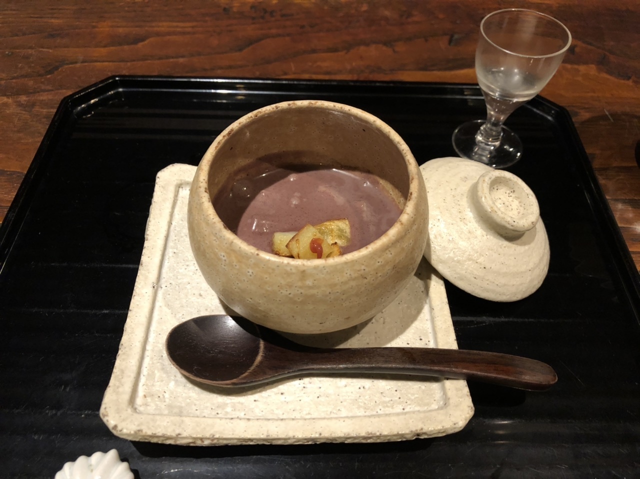 気取らないお人柄とお料理で人気が高く、なかなか予約が取れません。久しぶりにこちらの「黒米のお粥」がいただけると、ほっとします。