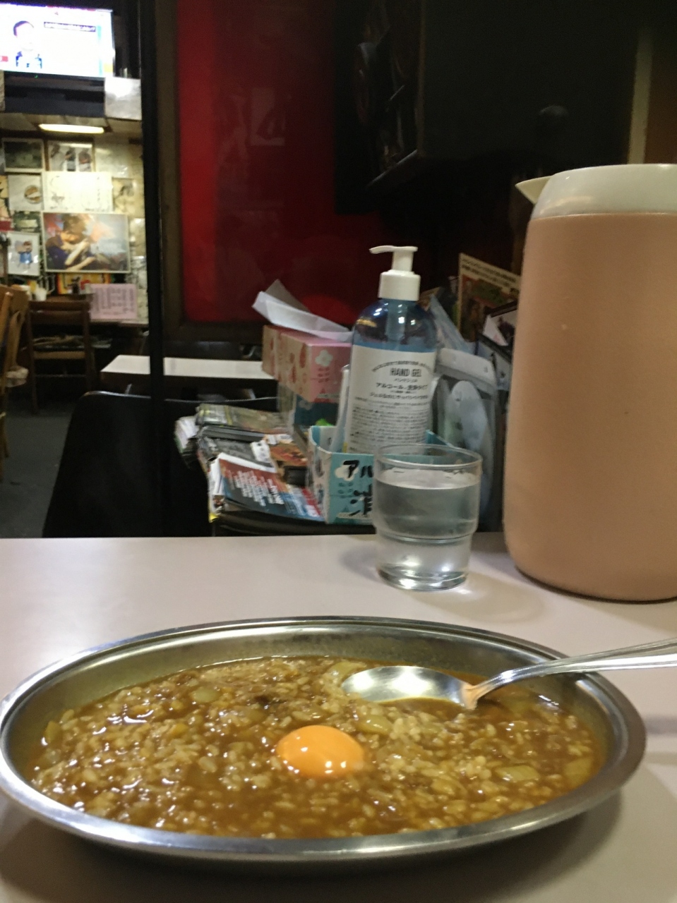 昭和時代から営業してそうな鄙びた店構えでカウンター席6つとテーブル席5つ程あり、壁には有名人のサインで埋め尽くされていました。メニューが豊富でしたが、一番人気のセイロンライスを注文。玉葱やひき肉を炒めている音が聞こえました。ルーとライスを混ぜたカレーで水分気が多く、ペロリと食べれ量は少なめでしたが味は良かったです。