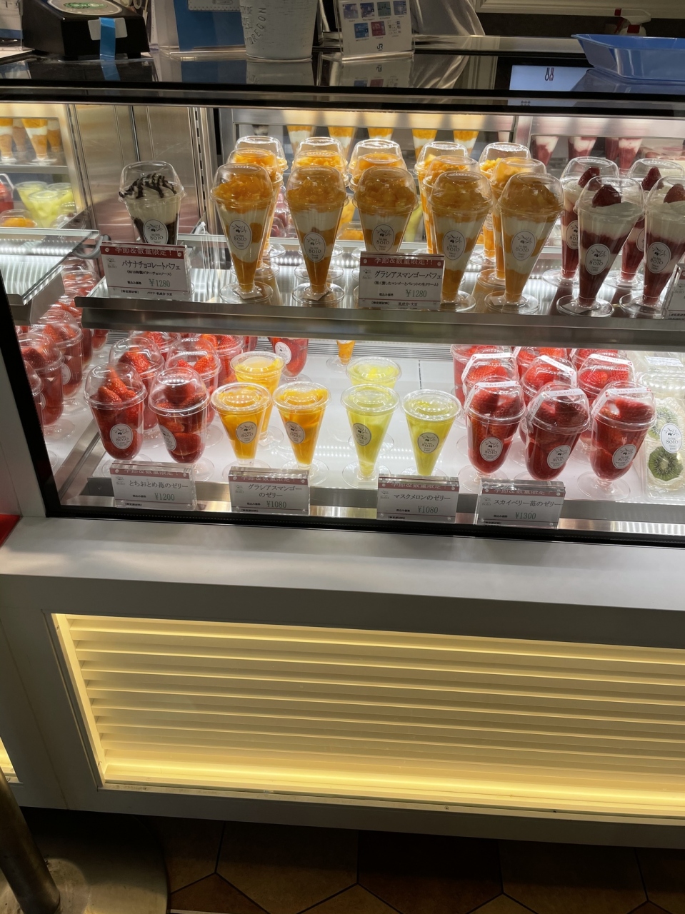 栃木にお店があるようですが、お店に伺ったのではありません。JR西船橋駅のコレもう食べた?のコーナーで購入しました。ショーケースにきれいな色とりどりのフルーツサンドやパフェゼリーが並び、果物好きなわたしは、迷わず、スカイベリーといういちごのサンドと果物サンドを購入。クリームが甘すぎず、果物との相性がバッチリでおいしかったです。