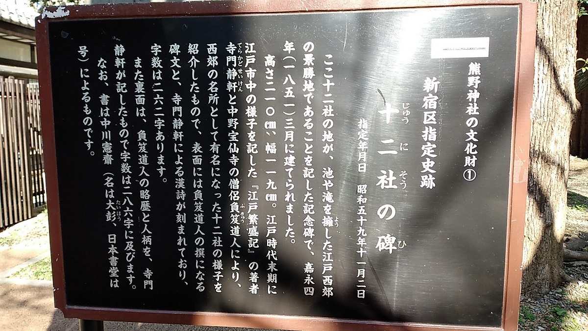 新宿中央公園内にあります。私は公園側から入ってしまいましたが、十二社通り側が正面です。正面から入りやや急な坂を登った方が厳かな雰囲気が楽しめる気がしました。