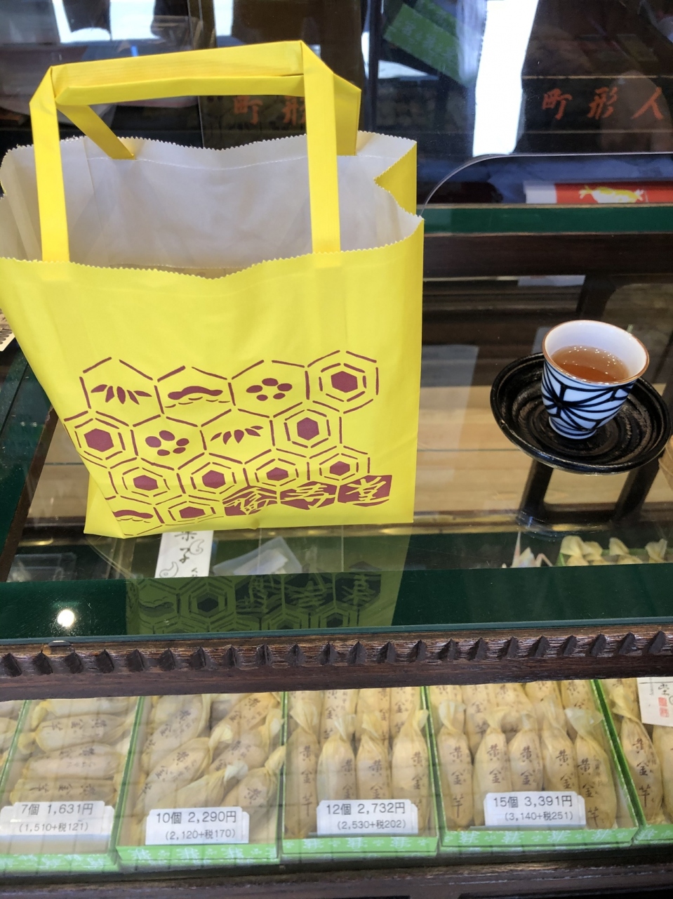 店の近くにはもうシナモンの香りが漂っており、歴史を感じさせる佇まいのお店がこれまた良いです。さつまいもを使ったお菓子で、上品な甘さと香りで3つから買えます。地方発送も可能なようで、発送希望の方にはお茶が供されていました。また伺いたいお店の一つです。