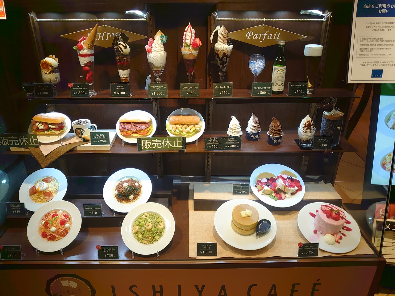 いつしか札幌に訪れた時コロナがまだ騒がれていて営業していなかったので、ここのスイーツも食べたいと思って初めて訪れました。ホットケーキやパフェアイスクリームなど石屋製菓の定番メニューがあって10分ぐらい目移りしてました。